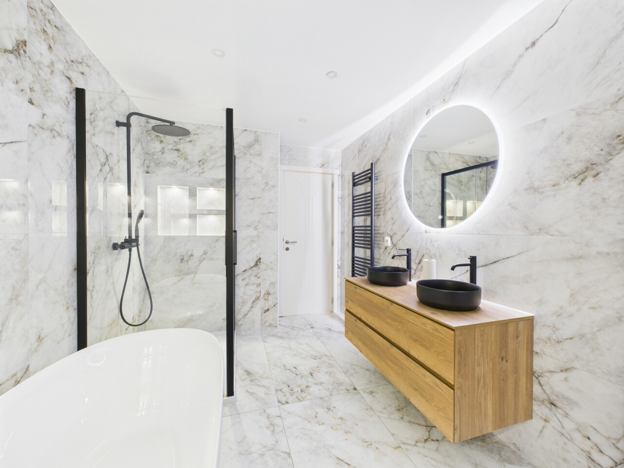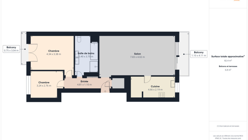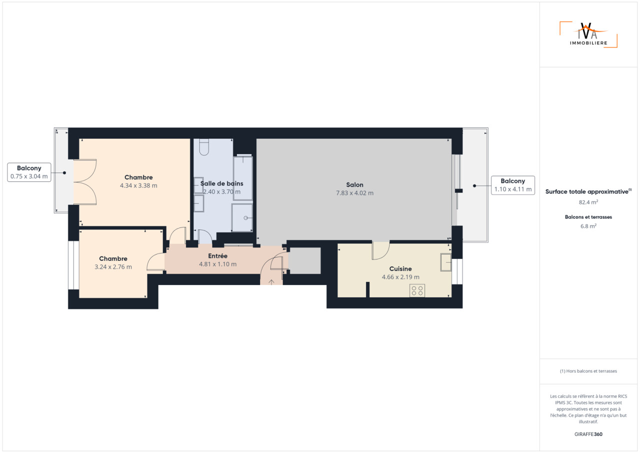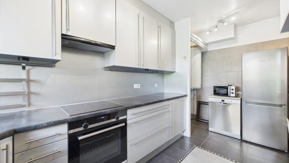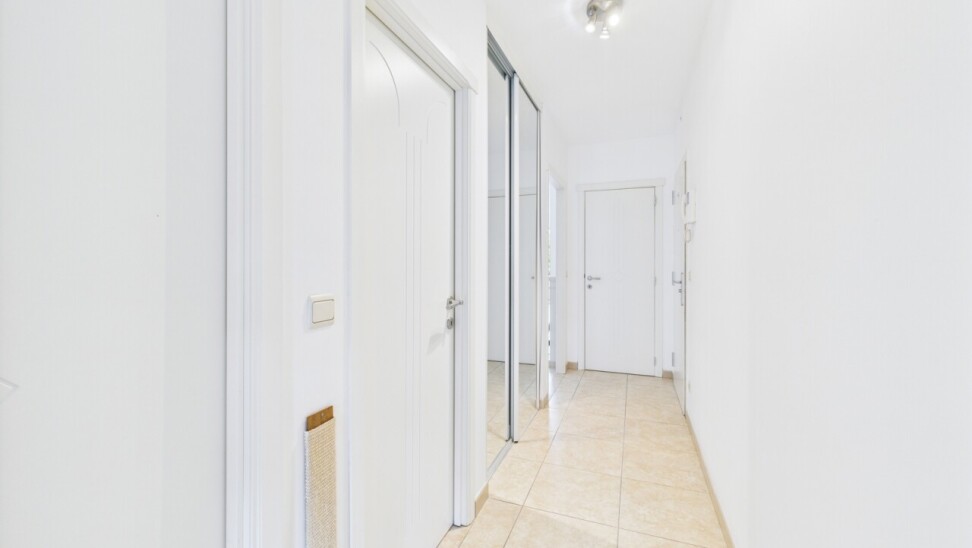 Il se compose d'une entrée, d'un agréable séjour de 32m² avec un balcon équipé d'une tente solaire électrique et d'une cuisine entièrement équipée. Le hall dessert également une chambre de 16 m² avec son balcon, une deuxième chambre de 9 m² , une magnifique salle de bains et un espace buanderie.