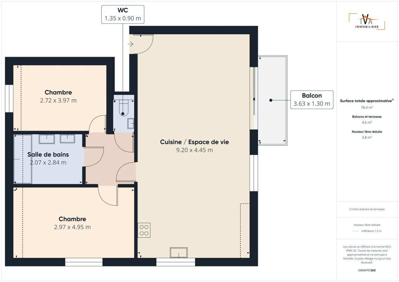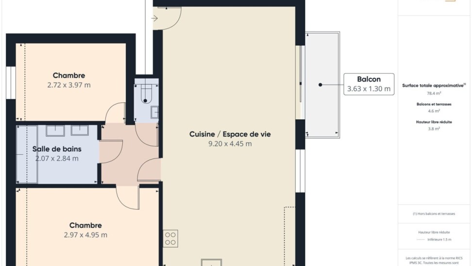 L'appartement se compose d'un agréable séjour lumineux avec une cuisine équipée ouverte de 40m² donnant accès à une terrasse de 5m² orientée Sud, d'un hall de nuit, d'un wc séparé, de 2 chambres (11m² et 15m²) et d'une salle-de-bains. Deux emplacements de parkings extérieurs et une grande cave complètent les prestations.