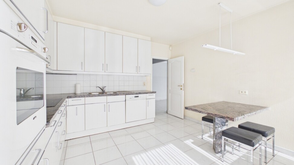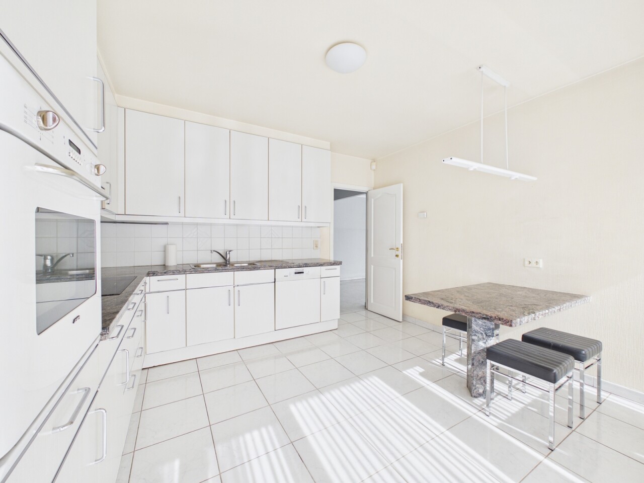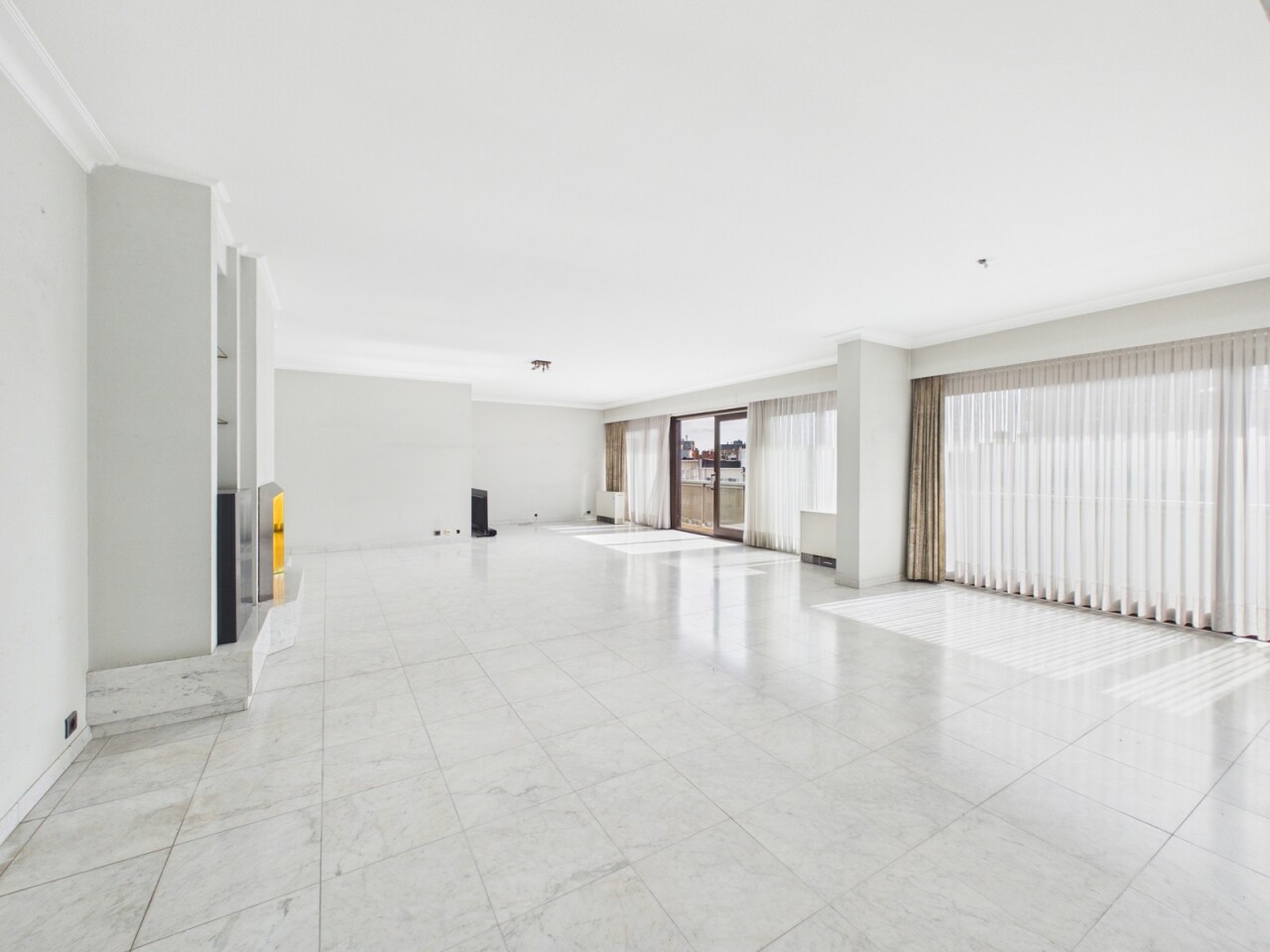 À deux pas de toutes les commodités, IVA vous propose en exclusivité ce spacieux appartement de standing de ±152 m² habitables à rafraîchir, idéalement situé à Koekelberg, à proximité immédiate des transports et de la Basilique. Implanté au sein d’une copropriété bien gérée et entretenue, il séduit par ses volumes généreux et sa luminosité. Il s’ouvre sur un hall d’entrée desservant un vaste séjour de ±62 m² avec feu ouvert décoratif, offrant la possibilité d’y aménager aisément un coin bureau. Le bien est complété par une cuisine dinatoire séparée de ±14 m² avec la possibilité de l’ouvrir sur le séjour. L’ensemble avec sol en marbre offre un cadre de vie confortable, prolongé par une agréable terrasse de ±17 m² orientée sud-ouest. L’espace nuit se compose de 2 chambres de ±13 m² et ±14 m², d’une salle de bains complète, une pièce buanderie séparée, ainsi que d’une spacieuse suite parentale de ±20 m² avec placards intégrés et salle de bains attenante (baignoire et douche) et toilette séparée. Equipements : vidéophone, système d’alarme, tente solaire électrique, chauffage par accumulateurs électriques. Électricité non conforme (travaux limités à prévoir), PEB : E. Une cave climatisée de ±7 m², idéale pour la conservation du vin, complète ce bien. Charges communes : +/- 200 euros comprenant frais de syndic, assurances, entretien communs et ascenseur. PRIX : 389.000 € sauf offre supérieure. EN OPTION : DOUBLE garage (40.000 €) et garage SIMPLE (30.000 €). Libre à l’acte.