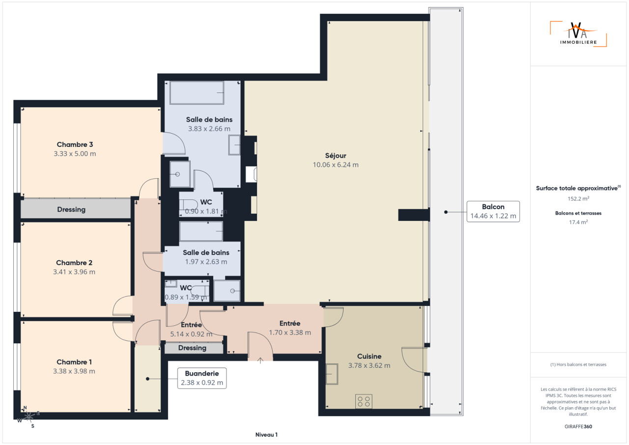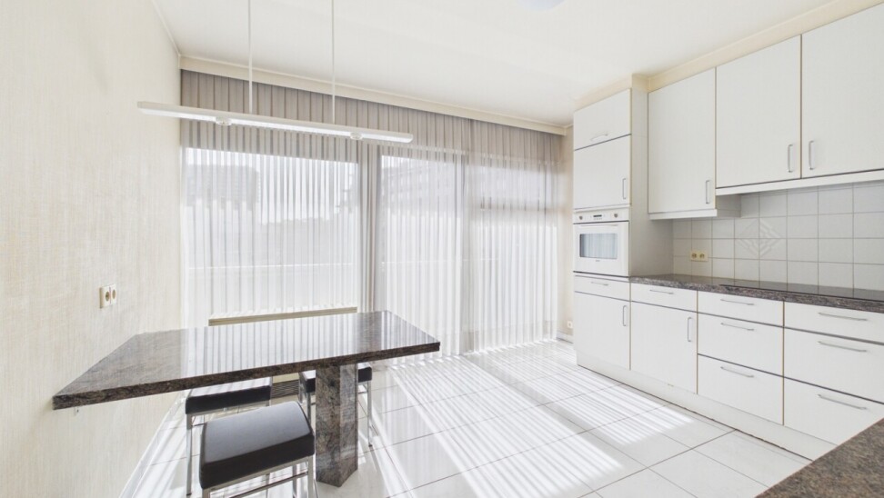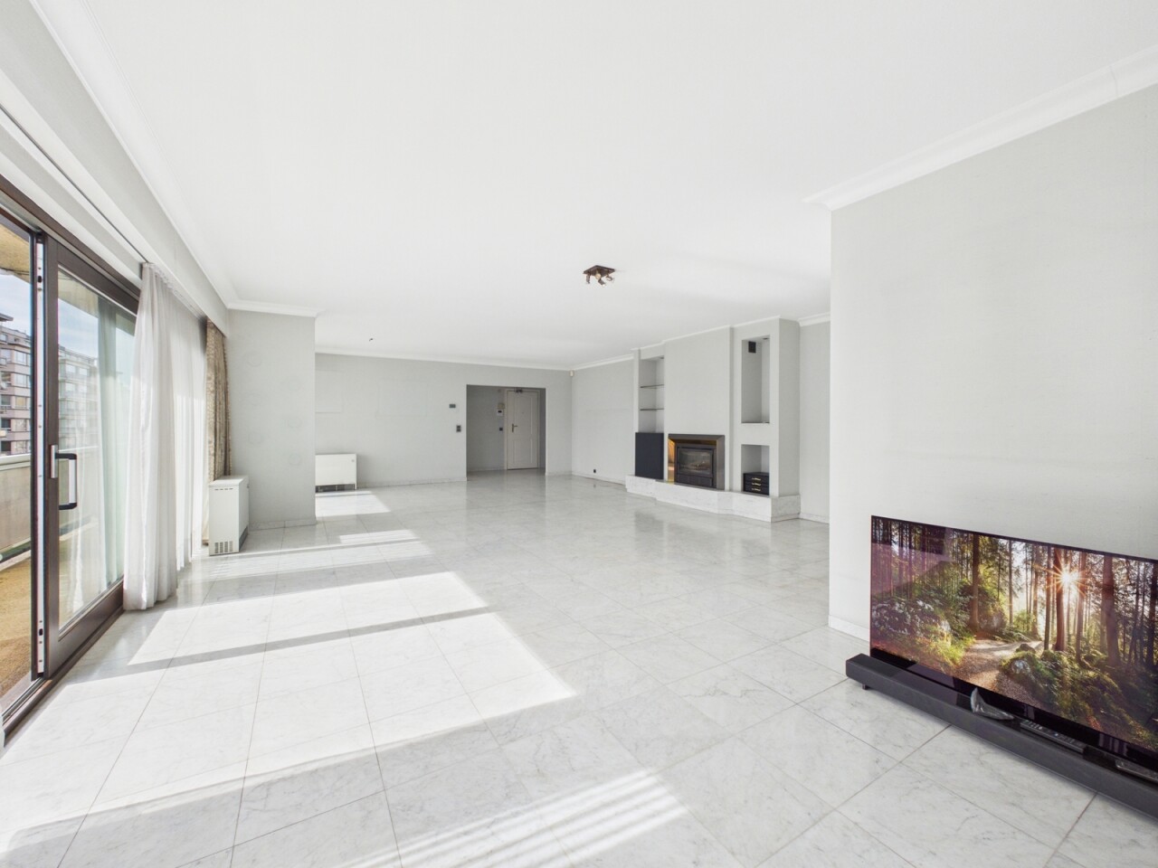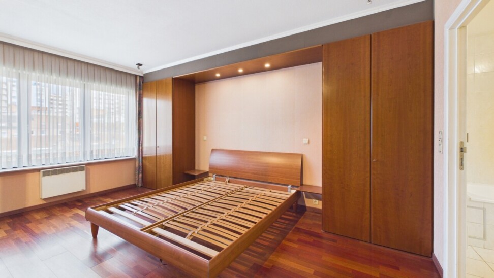 À deux pas de toutes les commodités, IVA vous propose en exclusivité ce spacieux appartement de standing de ±152 m² habitables à rafraîchir, idéalement situé à Koekelberg, à proximité immédiate des transports et de la Basilique. Implanté au sein d’une copropriété bien gérée et entretenue, il séduit par ses volumes généreux et sa luminosité. Il s’ouvre sur un hall d’entrée desservant un vaste séjour de ±62 m² avec feu ouvert décoratif, offrant la possibilité d’y aménager aisément un coin bureau. Le bien est complété par une cuisine dinatoire séparée de ±14 m² avec la possibilité de l’ouvrir sur le séjour. L’ensemble avec sol en marbre offre un cadre de vie confortable, prolongé par une agréable terrasse de ±17 m² orientée sud-ouest. L’espace nuit se compose de 2 chambres de ±13 m² et ±14 m², d’une salle de bains complète, une pièce buanderie séparée, ainsi que d’une spacieuse suite parentale de ±20 m² avec placards intégrés et salle de bains attenante (baignoire et douche) et toilette séparée. Equipements : vidéophone, système d’alarme, tente solaire électrique, chauffage par accumulateurs électriques. Électricité non conforme (travaux limités à prévoir), PEB : E. Une cave climatisée de ±7 m², idéale pour la conservation du vin, complète ce bien. Charges communes : +/- 200 euros comprenant frais de syndic, assurances, entretien communs et ascenseur. PRIX : 389.000 € sauf offre supérieure. EN OPTION : DOUBLE garage (40.000 €) et garage SIMPLE (30.000 €). Libre à l’acte.