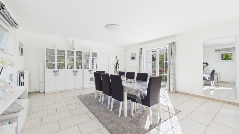 Sur les hauteurs de Ittre, en bordure du bois tout en restant proche du centre, IVA vous propose cette charmante villa de ±220 m² habitables, construite en 1965 et implantée sur un magnifique terrain de 36ares idéalement orienté plein sud. Ce bien rare séduit par son environnement exceptionnel, son calme absolu et sa superbe vue dégagée sur la campagne, offrant un cadre de vie privilégié. Le terrain, entièrement clôturé et accessible via un portail, constitue un véritable écrin de verdure, idéal pour les amoureux d’animaux grâce à la présence de trois box pour chevaux. La maison se compose au rez-de-chaussée d’un vaste hall d’entrée avec vestiaire, d’un WC, d’une cuisine et d’un séjour très lumineux de 55 m² ouvert sur le jardin. À l’étage, un hall de nuit, une chambre parentale de 18m², une salle de bains, un WC, deux chambres de 13m² et une quatrième chambre de 17m² avec coin douche. Au sous-sol, une grande pièce polyvalente faisant office de buanderie et salle de jeux (anciennement garage double), deux caves de rangement ainsi qu’une cave chaufferie avec la machinerie de la piscine. À l’extérieur, plusieurs parkings et un jardin aménagé, idéalement orienté pour profiter du soleil. Niveau équipement: châssis PVC DV, chaudière mazout, électricité conforme, PEB E. Ses atouts : terrain exceptionnel de 36 ares, vue dégagée, environnement paisible et cadre idéal pour les amateurs d’espace et de nature. *** FOAPD : 849.000 € sous réserve d’acceptation du propriétaire ***