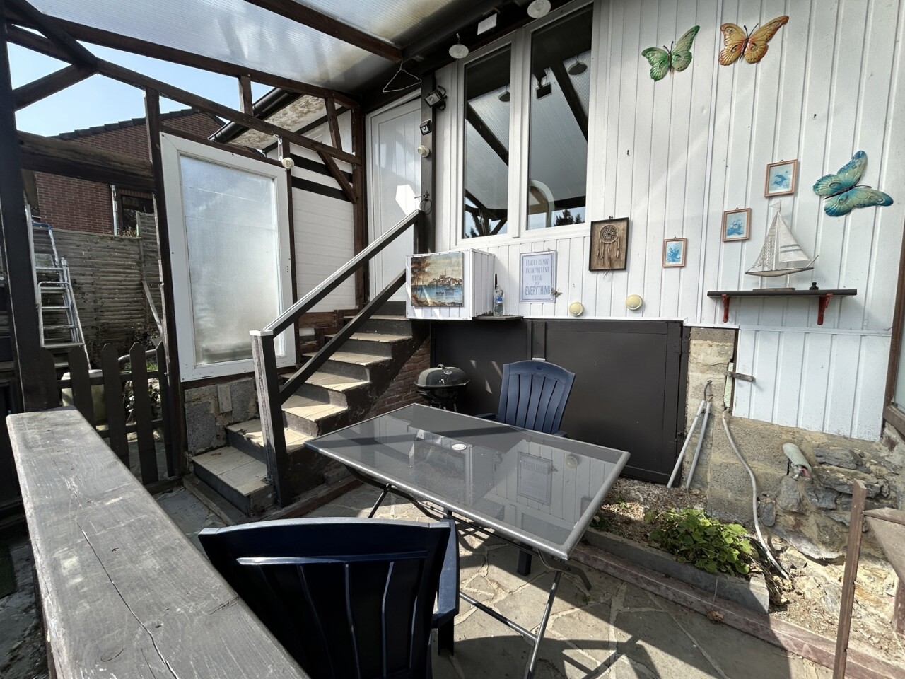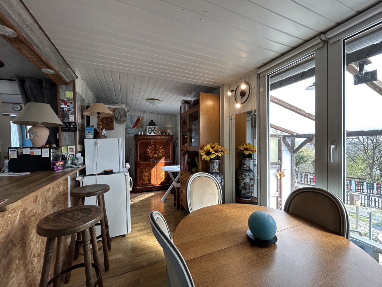 Idéalement situé à Hastière, dans un agréable quartier résidentiel, IVA vous propose ce charmant bungalow. Implanté sur un terrain de 4 ares 72 centiares, ce bien de 1973 offre une surface habitable de 36 m² (selon PEB) avec domiciliation autorisée. Il se compose d’un séjour lumineux de ±17 m², d’une cuisine équipée, d’une chambre ainsi que d’une salle de douche. Espace machine à laver/rangement sous le bungalow. À l’extérieur, vous bénéficierez d’un beau jardin bien orienté, d’une terrasse de ±18 m², de deux emplacements de parking et de deux abris de jardin. Équipements : chauffage aux pellets, châssis PVC double vitrage. PEB : G – électricité non conforme. Charges communes +/- 100€/mois (hors charges privatives) Idéal pour un investissement, une résidence principale ou une seconde résidence. *** Faire offre à partir de 69.000 € (sous réserve d’acceptation des vendeurs) *** Pour toute information complémentaire ou organiser une visite, contactez-nous au 02 850 03 63.
