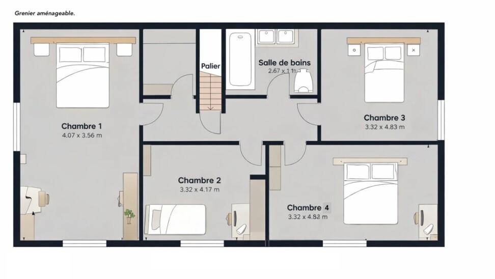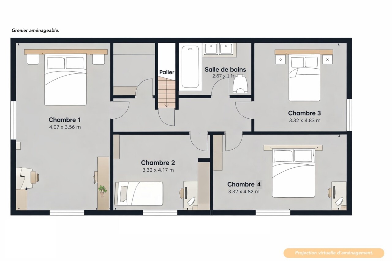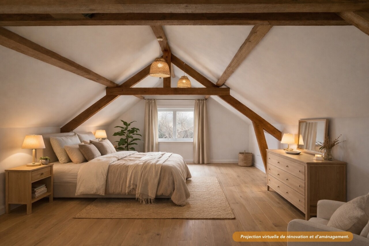 La maison dispose également d'un grand grenier aménageable de +/- 60m² (100m² brut) et d'un sous-sol composé d'un garage, d'une buanderie, d'une chaufferie et d'espaces de rangement.