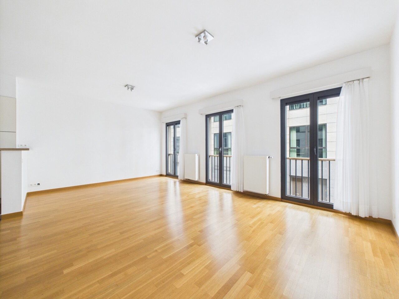 A proximité des transports en commun et de la Commission Européenne, l'appartement se situe au premier étage d'un immeuble avec ascenseur. Il se compose d'une entrée, d'un grand séjour avec une cuisine américaine entièrement équipée, d'une salle de bains, d'un WC séparé et de deux grandes chambres.