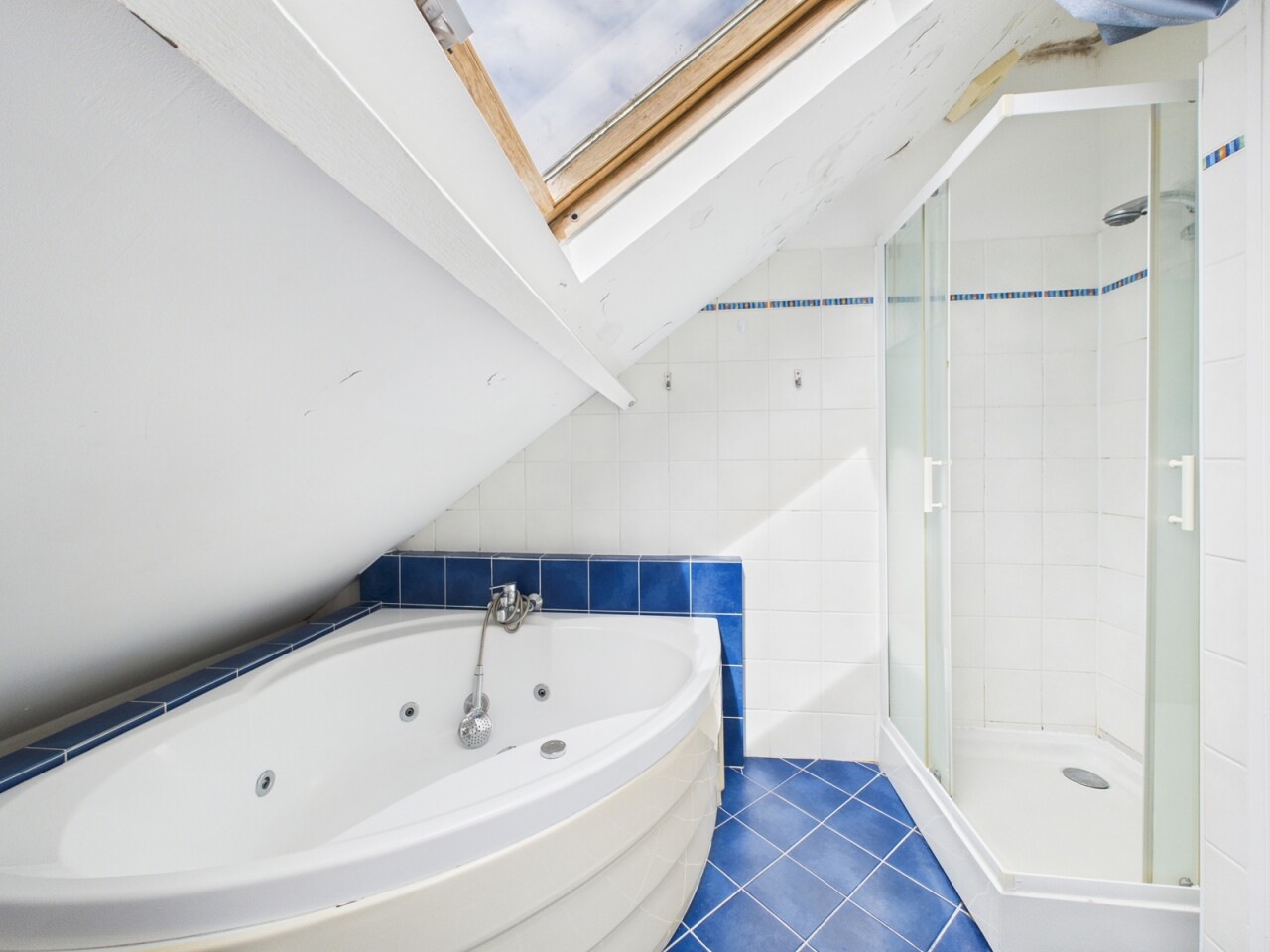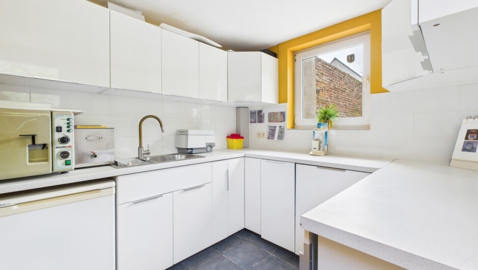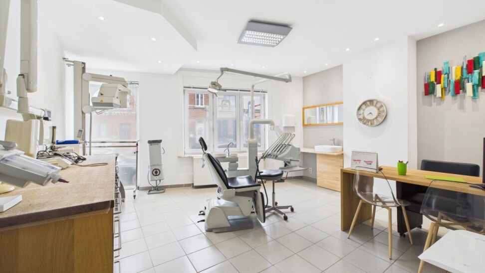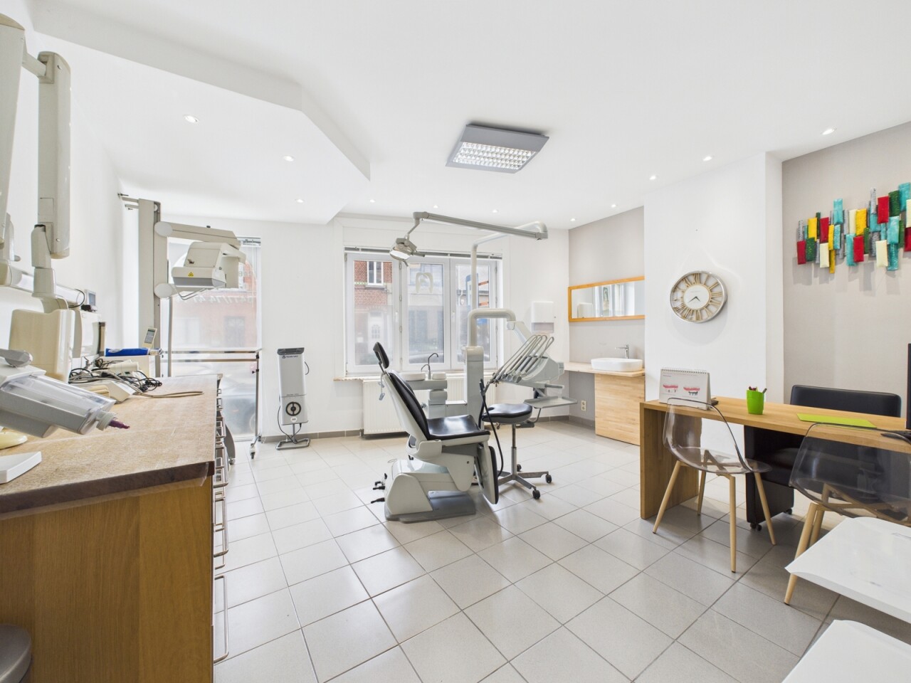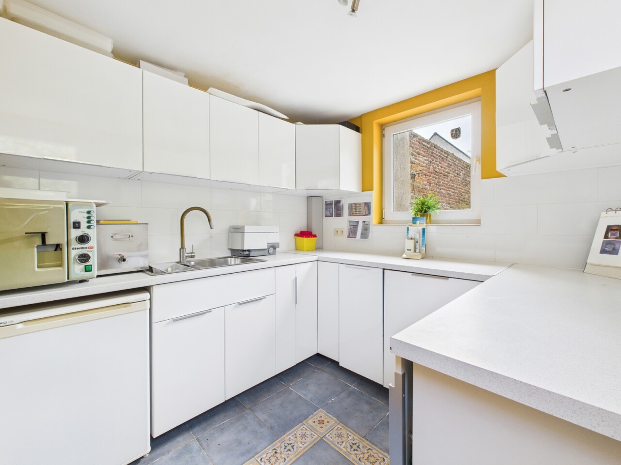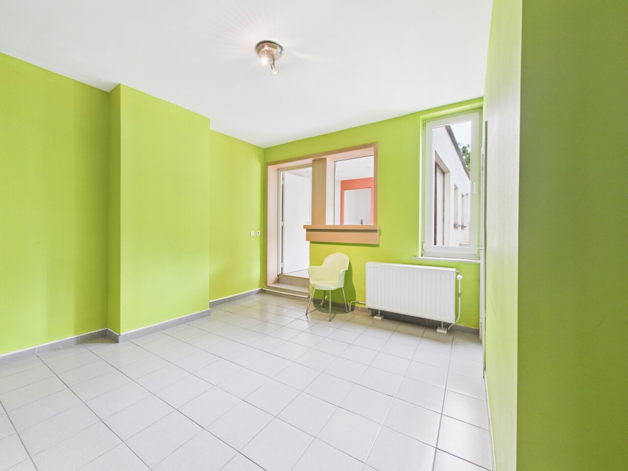 A l'étage, l'immeuble comprend un duplex en bon état avec salon spacieux (32m²), cuisine semi-équipée et salle à manger (22m²). Au +1, nous retrouvons 3 chambres (2x13m², 12m²) une salle de bains avec bain et douche et un wc séparé. Ce logement est actuellement loué (1.000 EUR/mois).