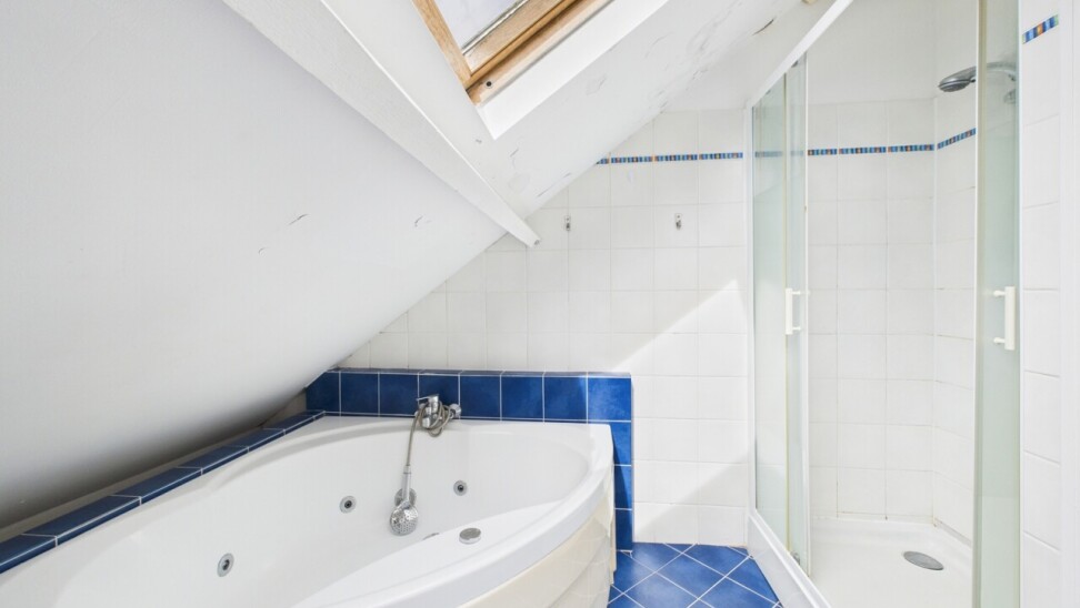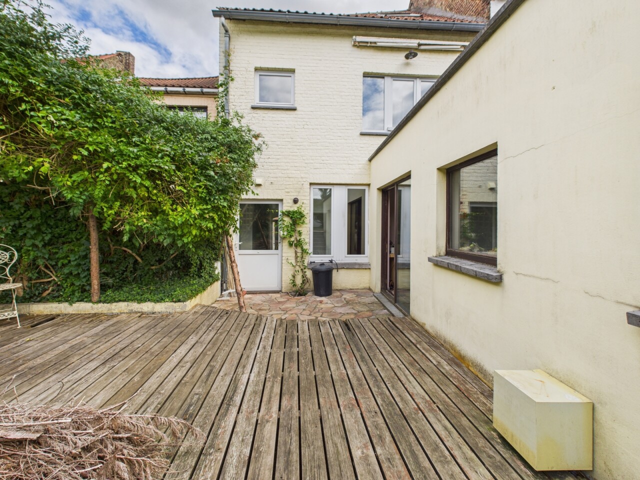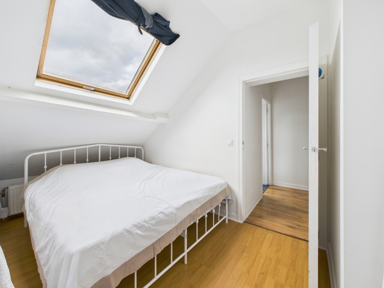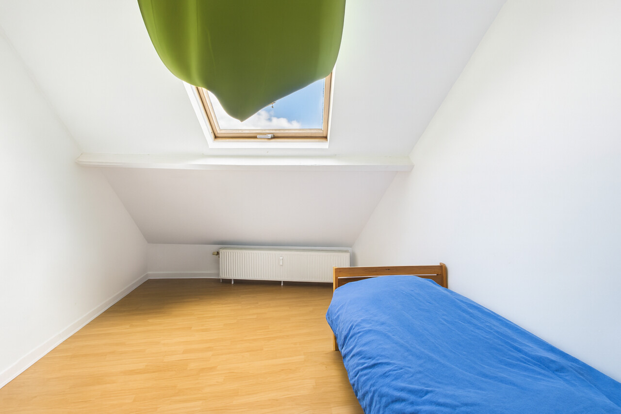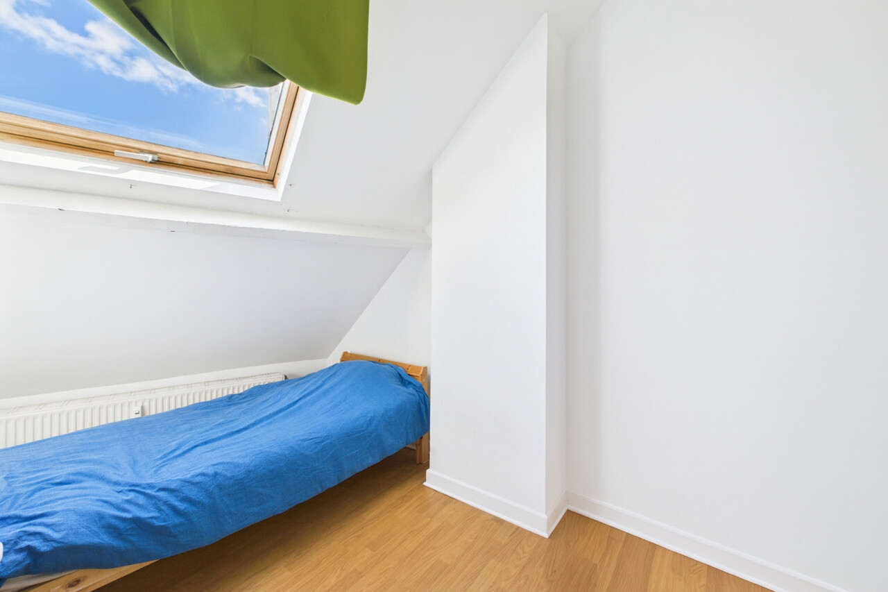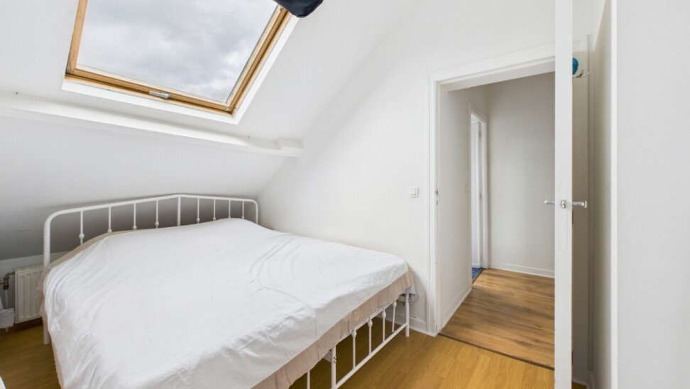 A l'étage, l'immeuble comprend un duplex en bon état avec salon spacieux (32m²), cuisine semi-équipée et salle à manger (22m²). Au +1, nous retrouvons 3 chambres (2x13m², 12m²) une salle de bains avec bain et douche et un wc séparé. Ce logement est actuellement loué (1.000 EUR/mois).