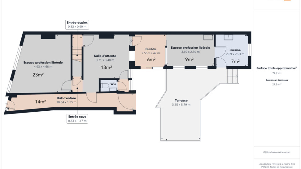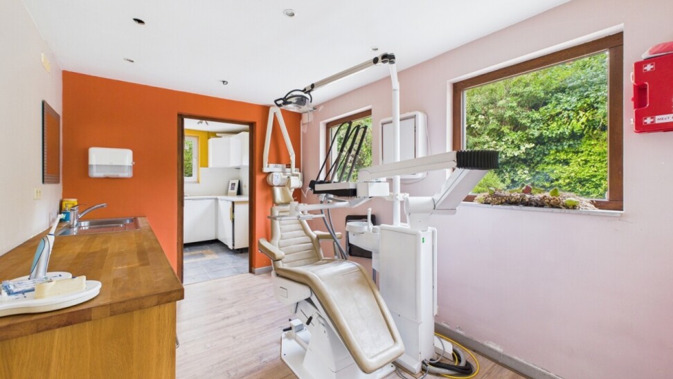 Le RDC est idéal pour l'exercice d'une profession libérale et se présente comme suit : une salle d'attente avec wc visiteurs, un bureau, une cuisine, deux espaces de bureau de respectivement 23m² et 9m². Ce niveau est actuellement libre. Possibilités de réaménagement en fonction des besoins. Loyer potentiel après rafraichissement (900 EUR/mois).