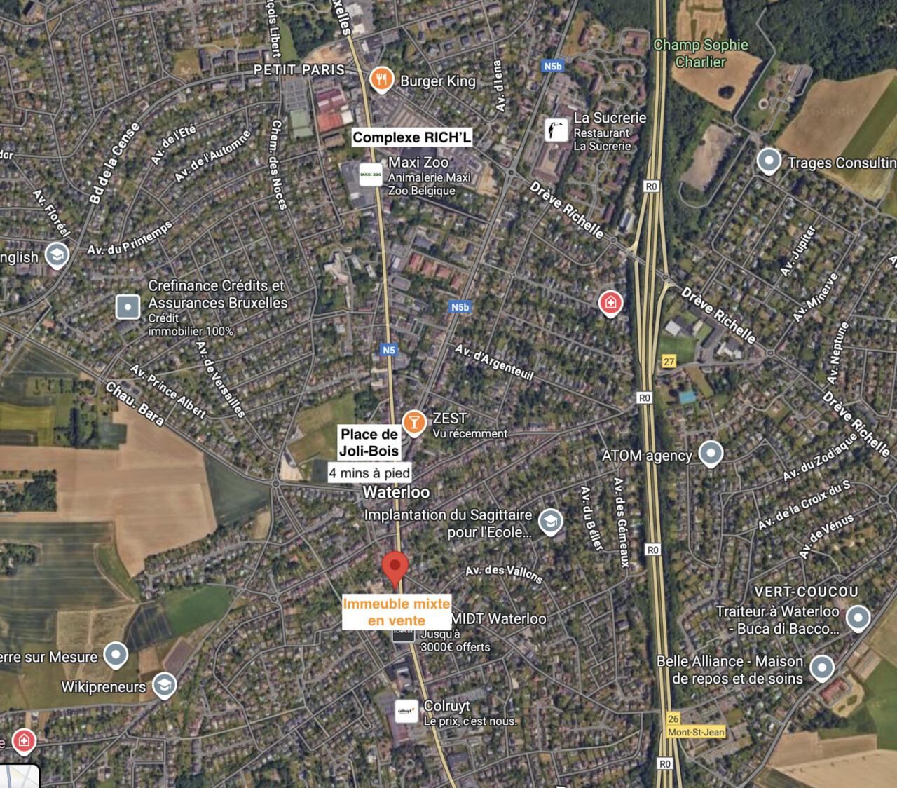 Idéalement situé à deux pas de la place de Joli-Bois à Waterloo, IVA vous présente cet immeuble mixte avec bon rendement locatif composé d’un rez-de-chaussée pour bureau/profession libérale (60m²) et d’un duplex 3 chambres (102m²).