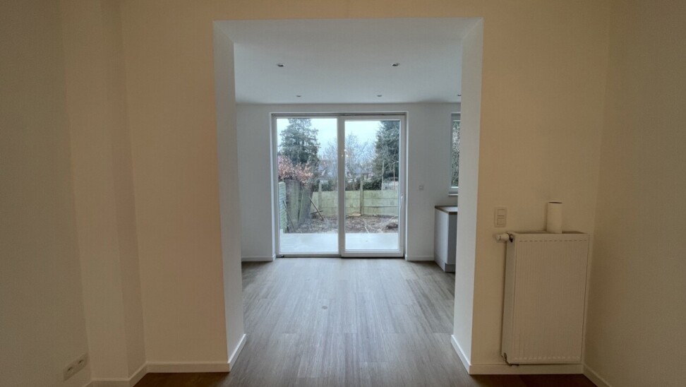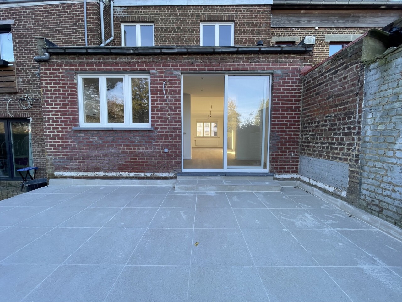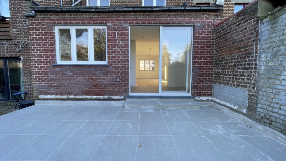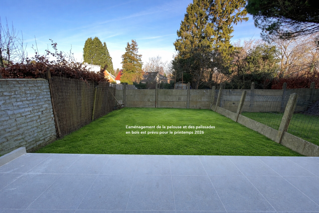 A l'extérieur, vous profiterez d'une belle terrasse et d'un petit jardin (aménagement de la pelouse et palissades prévu pour le printemps 2026).