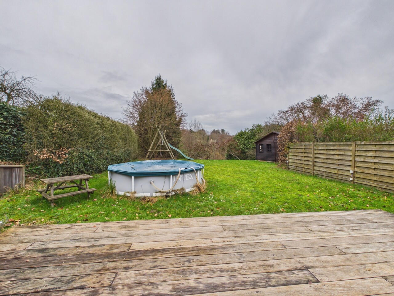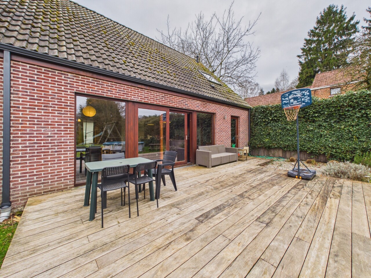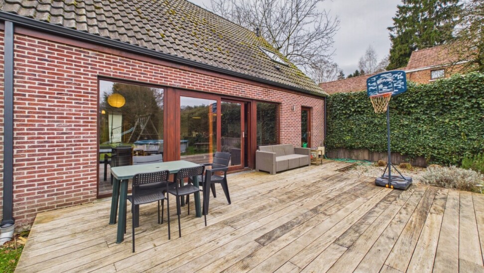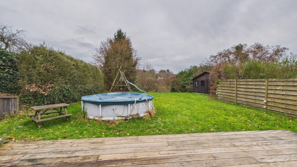 À l’extérieur, vous découvrirez une grande terrasse, un beau jardin ainsi qu’un bel abri de jardin. Plusieurs emplacements de parking se trouvent à l’avant de la maison.