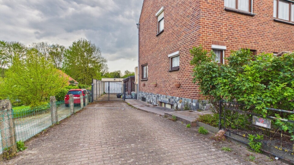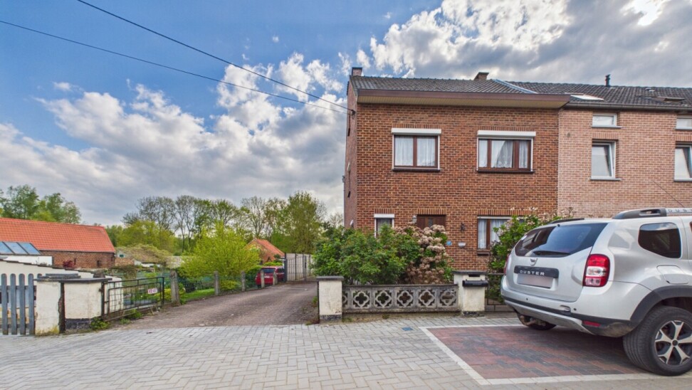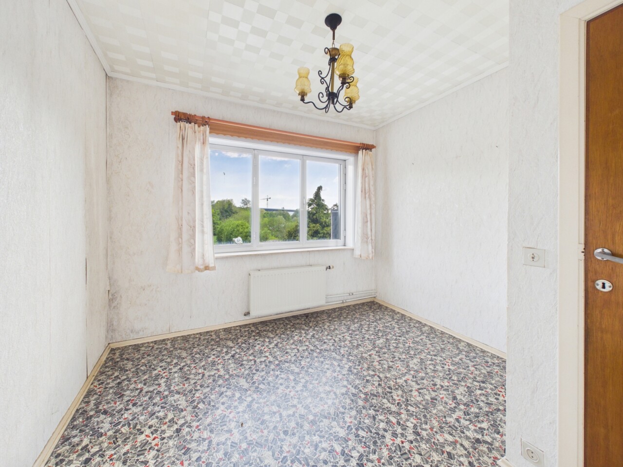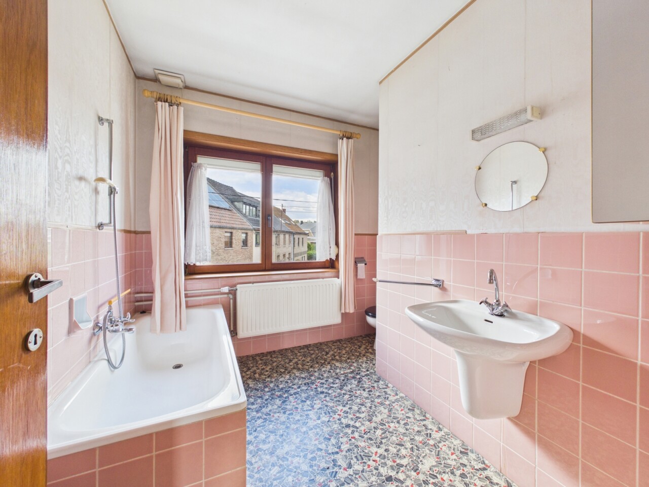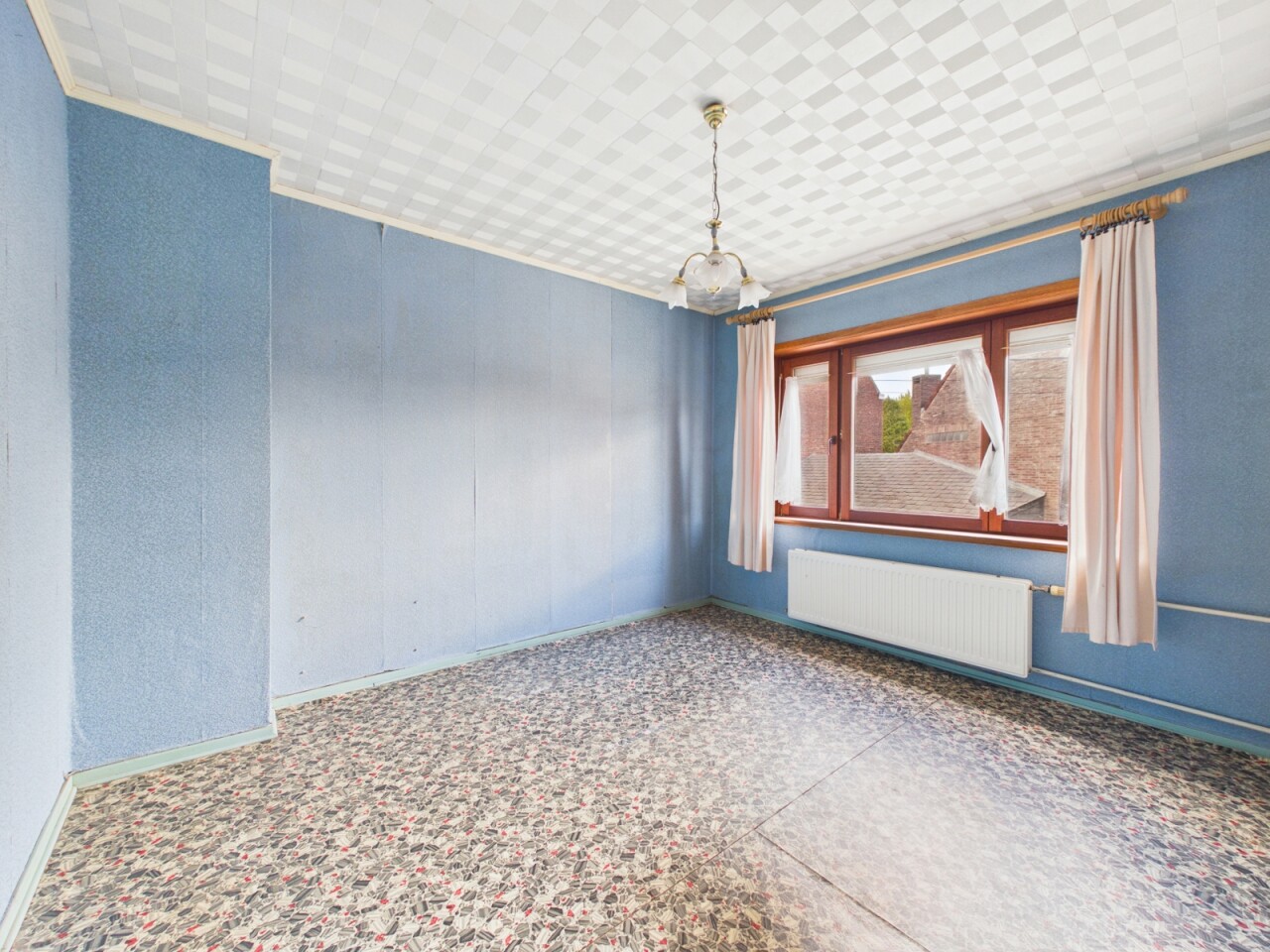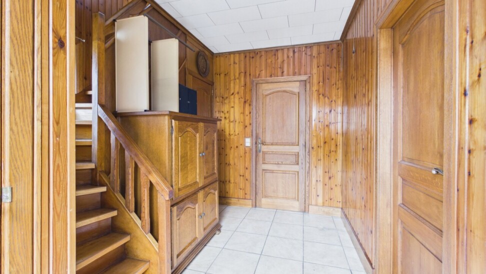 À l’étage, vous trouverez trois chambres (±9,5 m², 11 m² et 13 m²) ainsi qu’une salle de bains avec WC. Le grenier, actuellement accessible par une trappe, offre un beau potentiel d’aménagement permettant la création d’une à deux chambres supplémentaires moyennant l’installation d’un escalier.