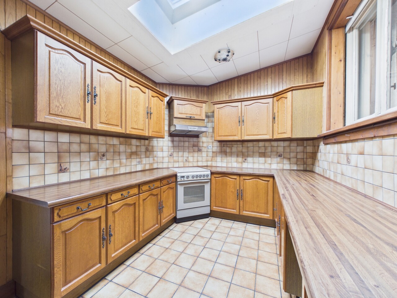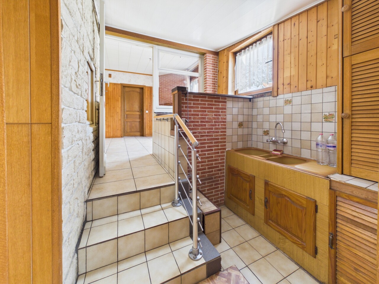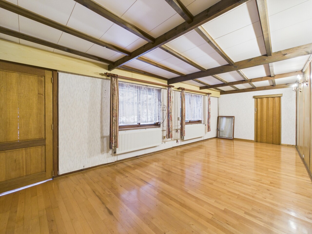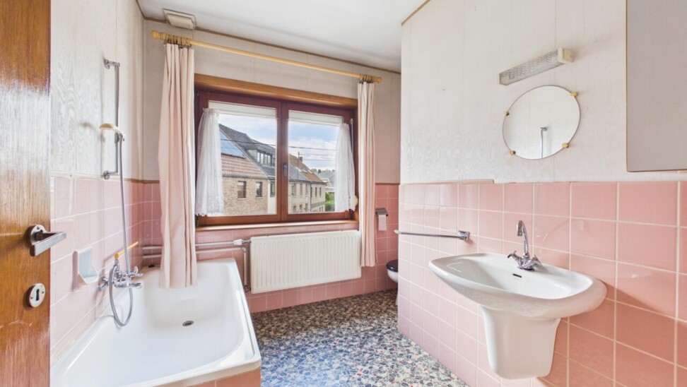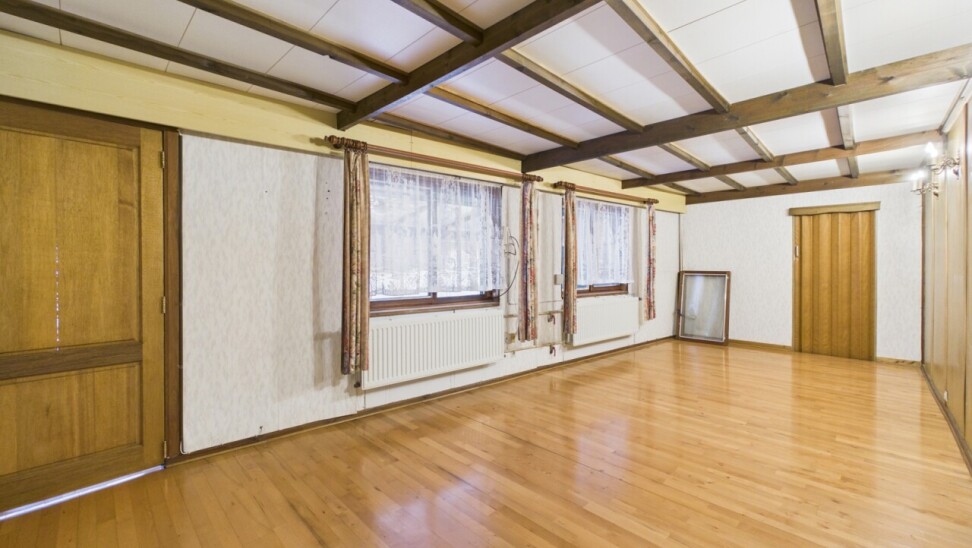 À l’étage, vous trouverez trois chambres (±9,5 m², 11 m² et 13 m²) ainsi qu’une salle de bains avec WC. Le grenier, actuellement accessible par une trappe, offre un beau potentiel d’aménagement permettant la création d’une à deux chambres supplémentaires moyennant l’installation d’un escalier.