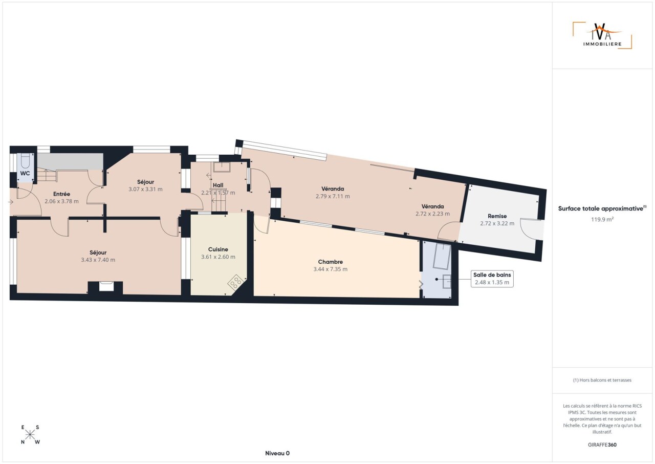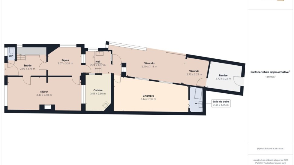 Elle se compose, au rez-de-chaussée, d’un hall d’entrée avec WC, d’un séjour traversant lumineux, d’une salle à manger, d’une cuisine, d’une véranda, ainsi que d’une chambre avec salle de bains attenante, offrant la possibilité d’une vie de plain-pied.