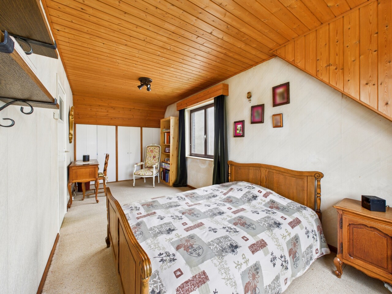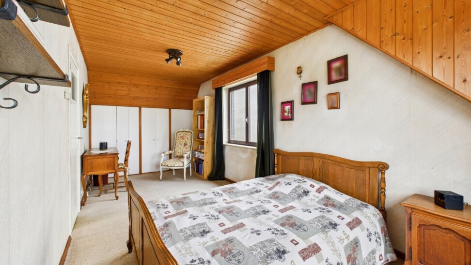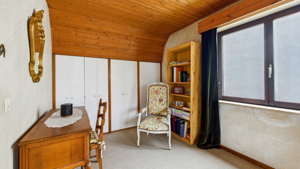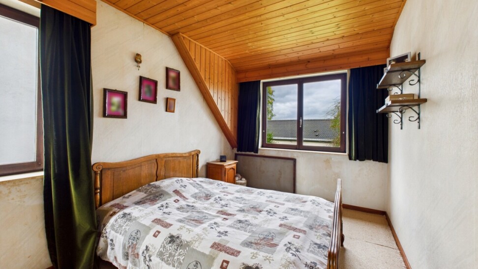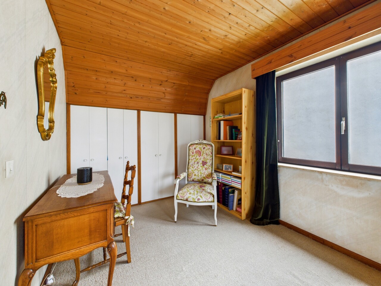 D'une superficie habitable de ± 125m², elle se compose au rez-de-chaussée, d'une entrée avec vestiaire, d'un wc séparé, d'une pièce de vie avec feu ouvert, d'une cuisine (possibilité cuisine ouverte), d'une véranda donnant sur le jardin et d'un garage avec coin buanderie. A l'étage, un hall de nuit desservant deux grandes chambres (21 et 15,5m²), une petite chambre ou bureau, une salle de bains avec wc et un grenier de stockage.