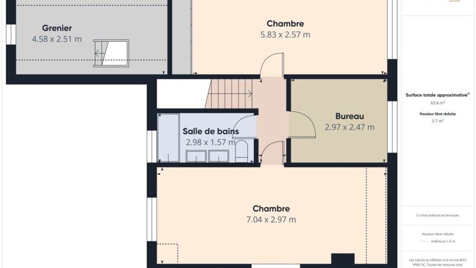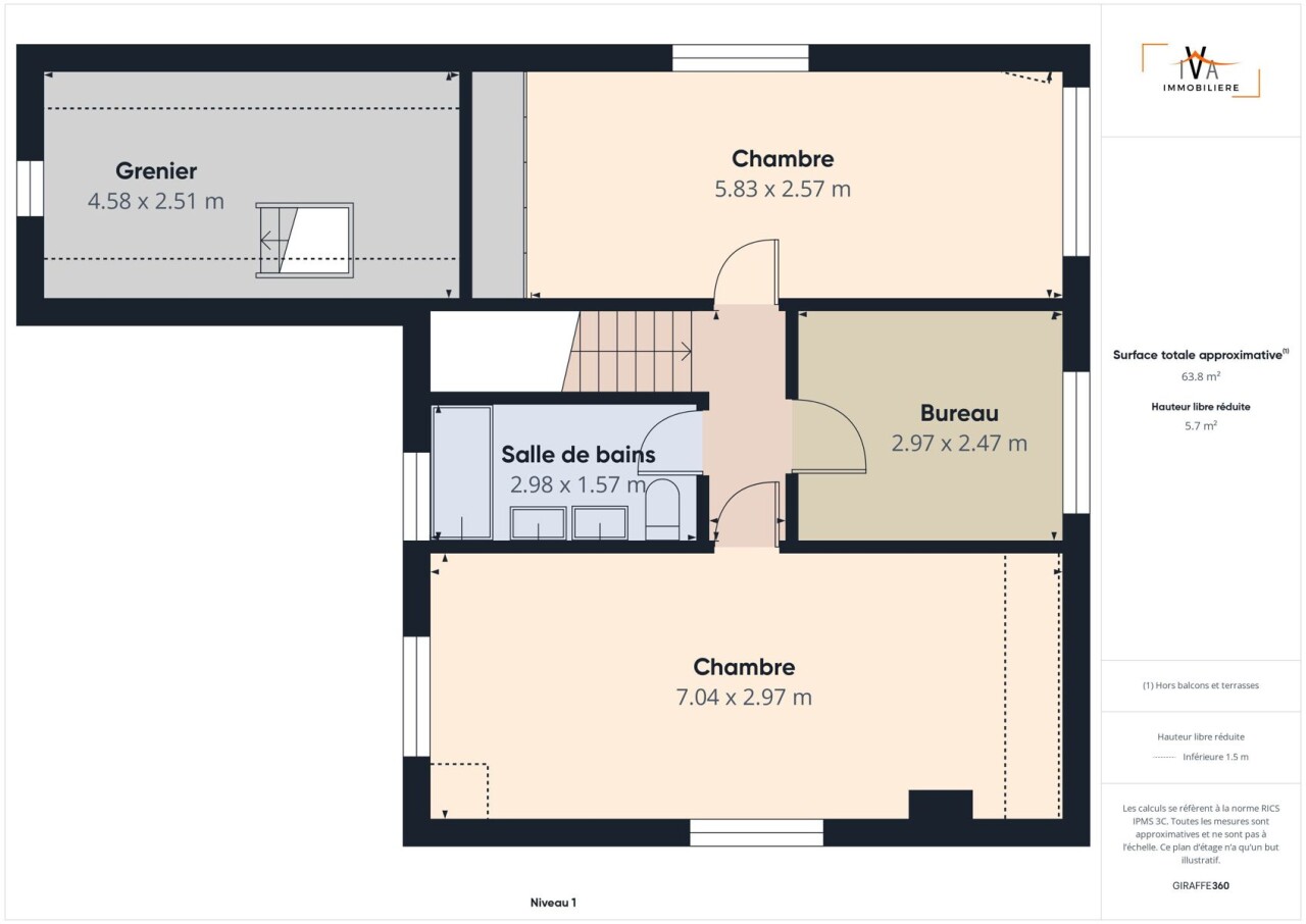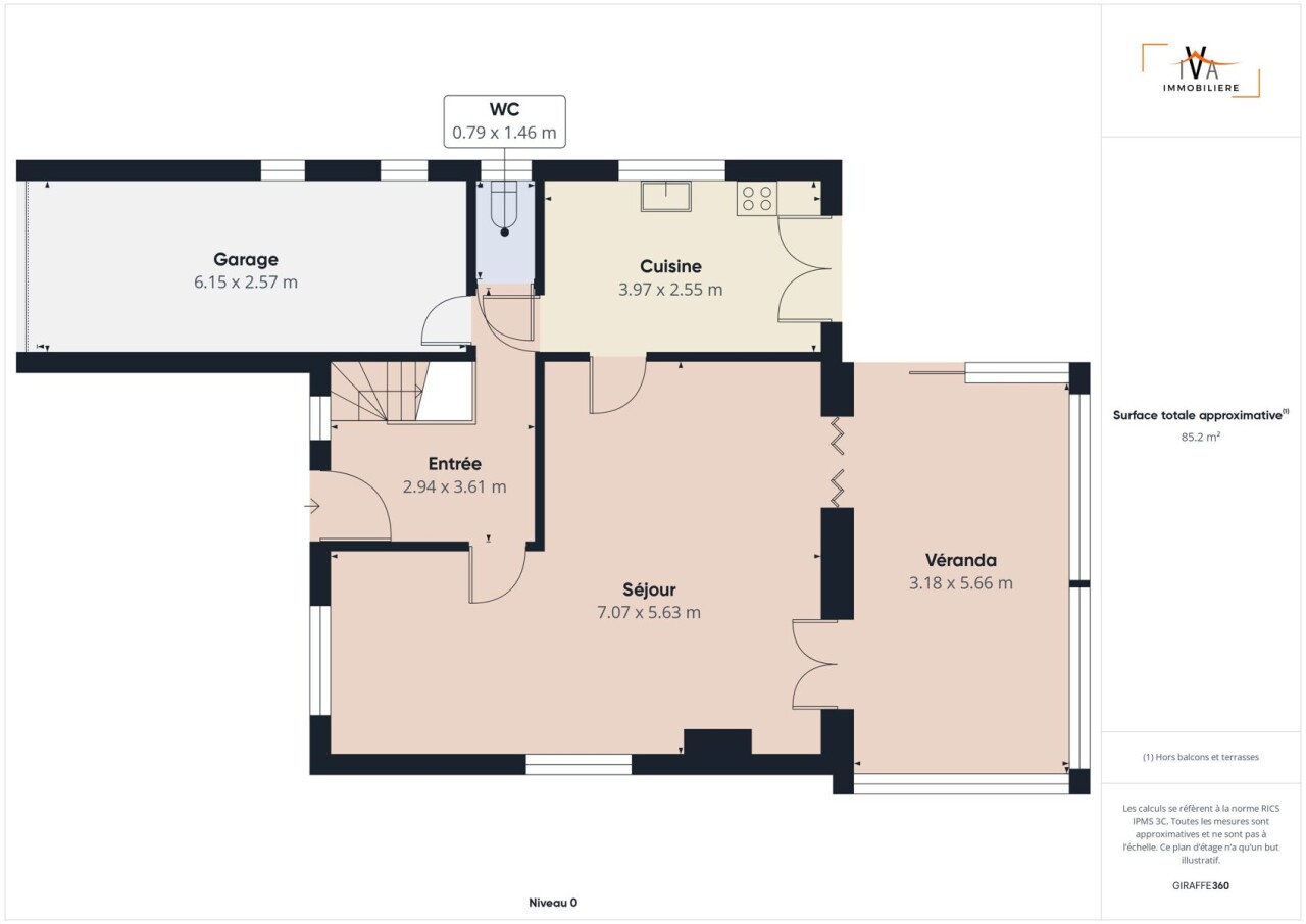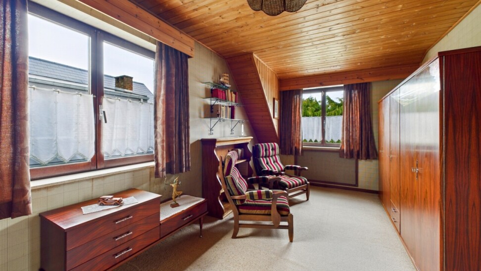D'une superficie habitable de ± 125m², elle se compose au rez-de-chaussée, d'une entrée avec vestiaire, d'un wc séparé, d'une pièce de vie avec feu ouvert, d'une cuisine (possibilité cuisine ouverte), d'une véranda donnant sur le jardin et d'un garage avec coin buanderie. A l'étage, un hall de nuit desservant deux grandes chambres (21 et 15,5m²), une petite chambre ou bureau, une salle de bains avec wc et un grenier de stockage.