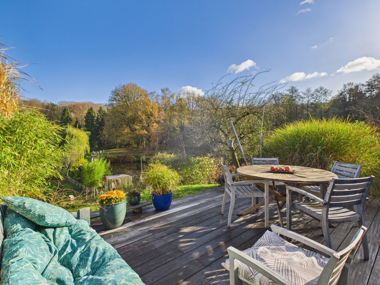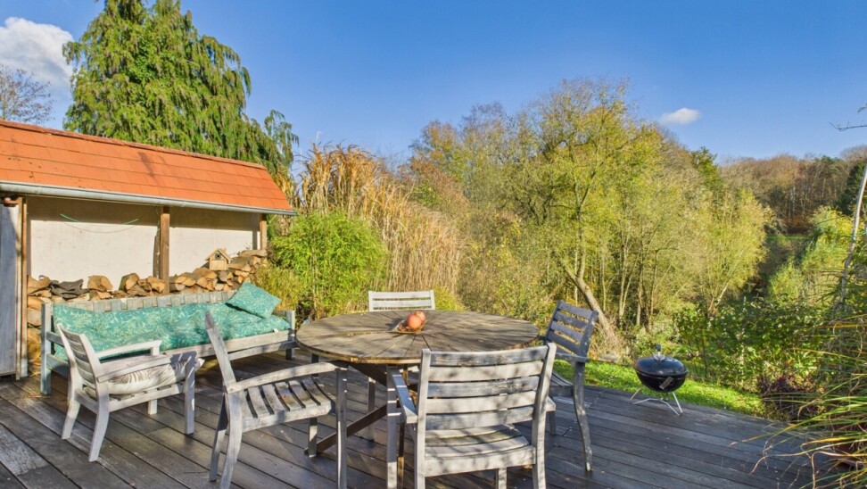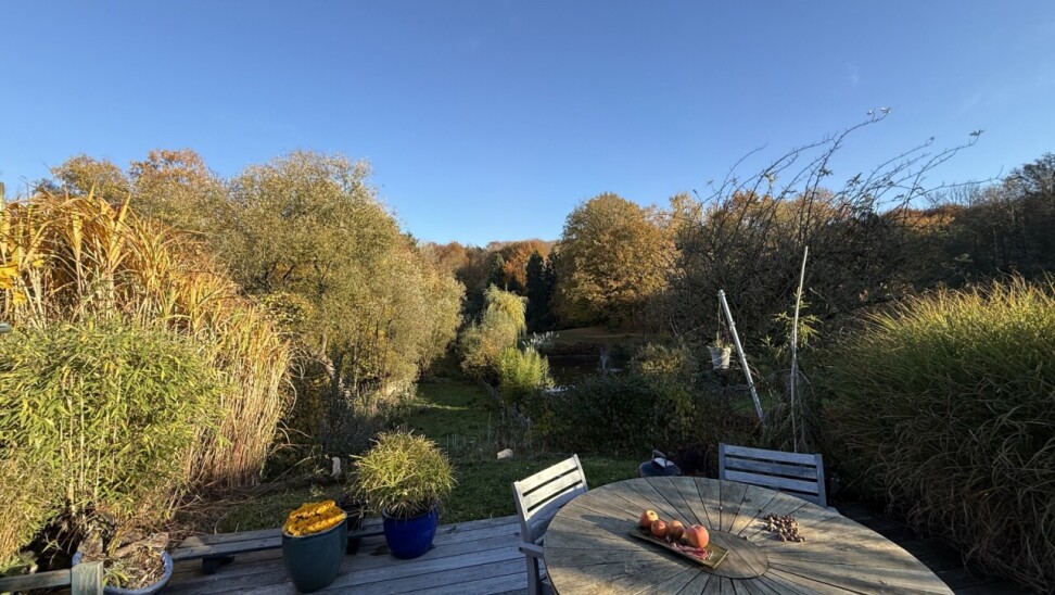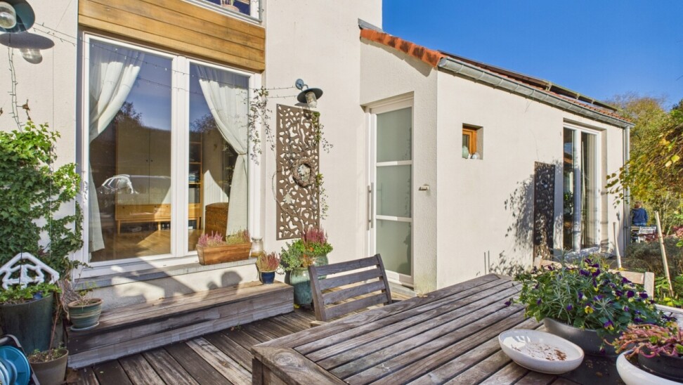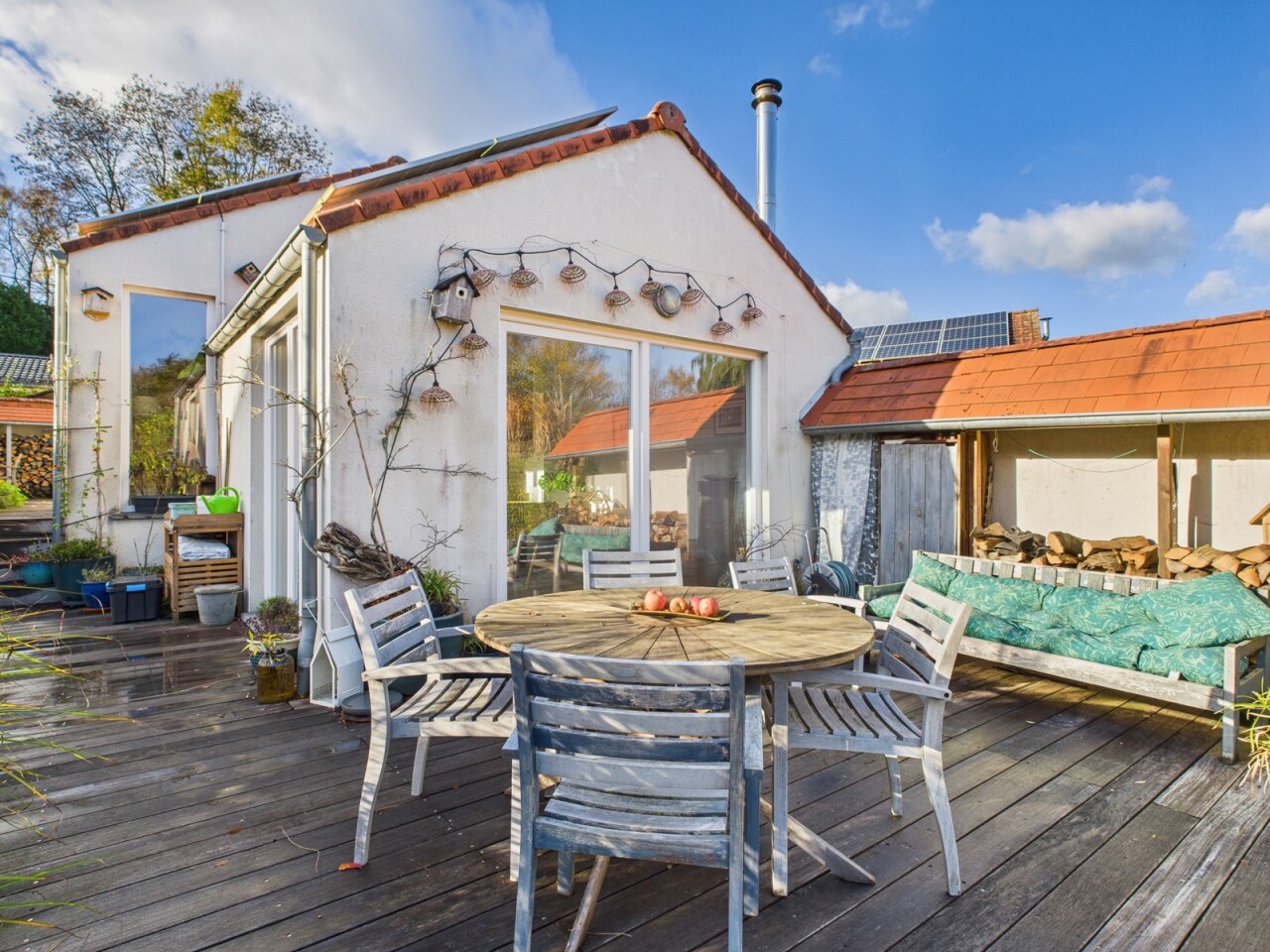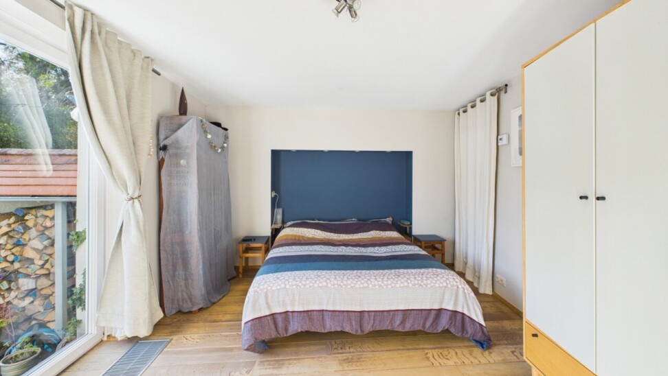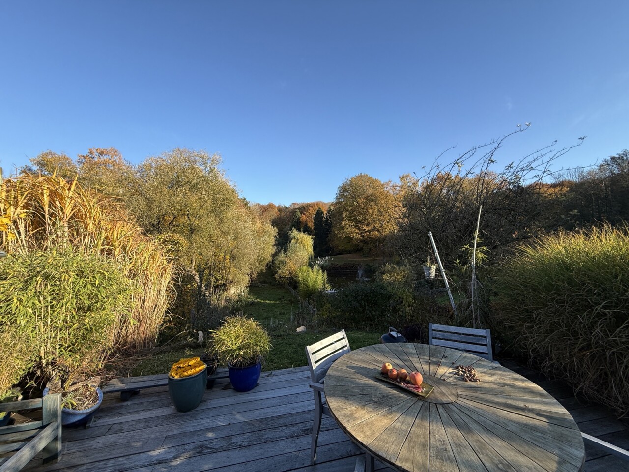 À l’extérieur, une jolie terrasse surplombe un jardin préservé, véritable cocon de nature, où il est possible de profiter du chant des oiseaux, de la lumière filtrée par les arbres, et de l’énergie paisible du lieu.