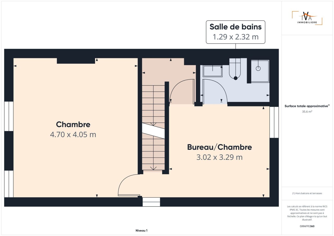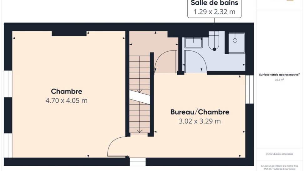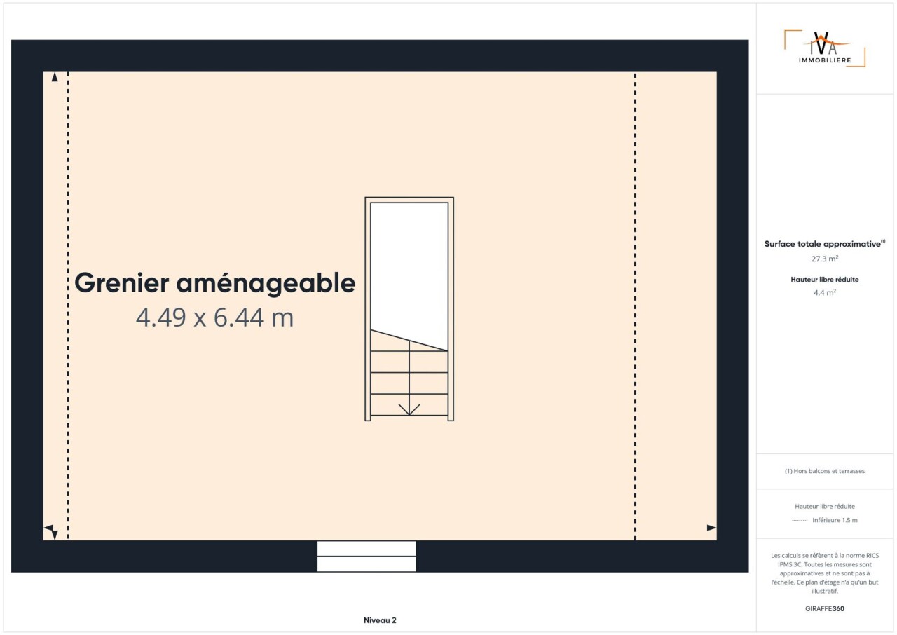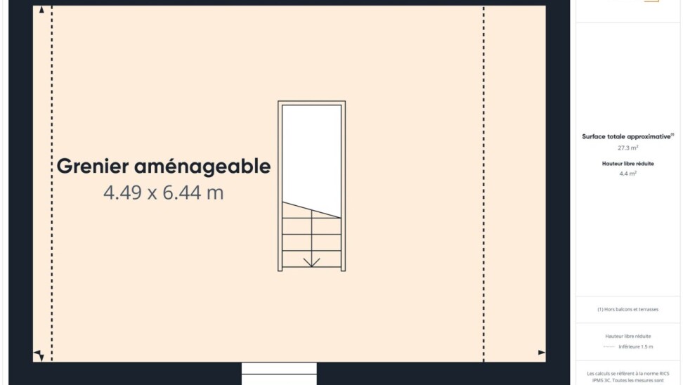 Au deuxième étage, une grande chambre de 27,5m².