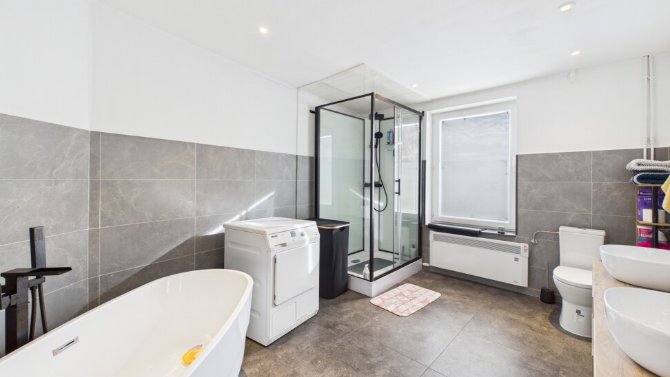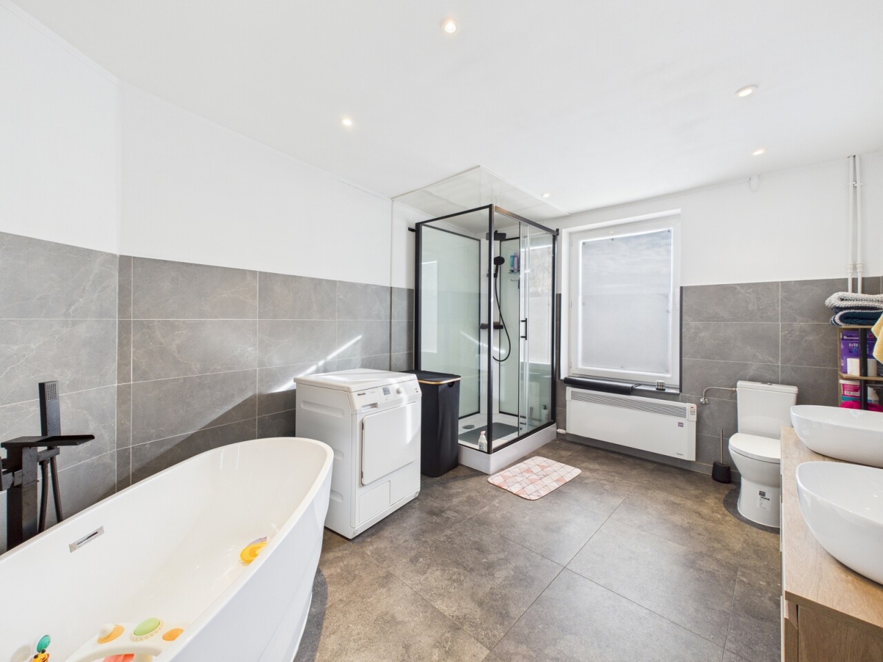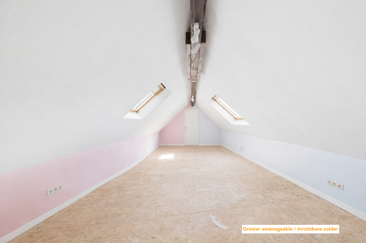 A proximité de la gare de Lembeek et de toutes les commodités, IVA vous propose cette charmante maison 3 façades entièrement rénovée de 144 m² habitables sur un terrain de 4 ares environ. Située au calme avec vue sur les champs, celle-ci est accessible via un chemin piéton. Le rez-de-chaussée offre un grand séjour lumineux et une salle à manger ouverte sur une cuisine entièrement équipée et récente. À l’étage, le hall de nuit dessert 2 chambres confortables (12 et 13 m²) et une salle de bains moderne avec baignoire et douche, parfaite pour un cadre familial. Un escalier fixe mène au grenier aménageable et isolé (25 m²), offrant la possibilité de créer une chambre et une salle de bains supplémentaires. Au niveau des extérieurs, on retrouve une belle terrasse aménagée et un jardin principal avec cabanon entièrement isolé, idéal comme atelier ou espace professionnel. La maison bénéficie également d'un jardin supplémentaire, parfait pour un potager ou des activités de loisirs et d'une cave de rangement. Equipements et caractéristiques : poêle à pellets, chaudière à condensation au gaz (2023), adoucisseur d'eau, électricité CONFORME, PEB C, absence d'amiante. *** Prix de vente : Faire offre à partir de 350.000 EUR *** Contactez-nous pour organiser une visite au 02/850.03.63 et découvrir cette belle opportunité.