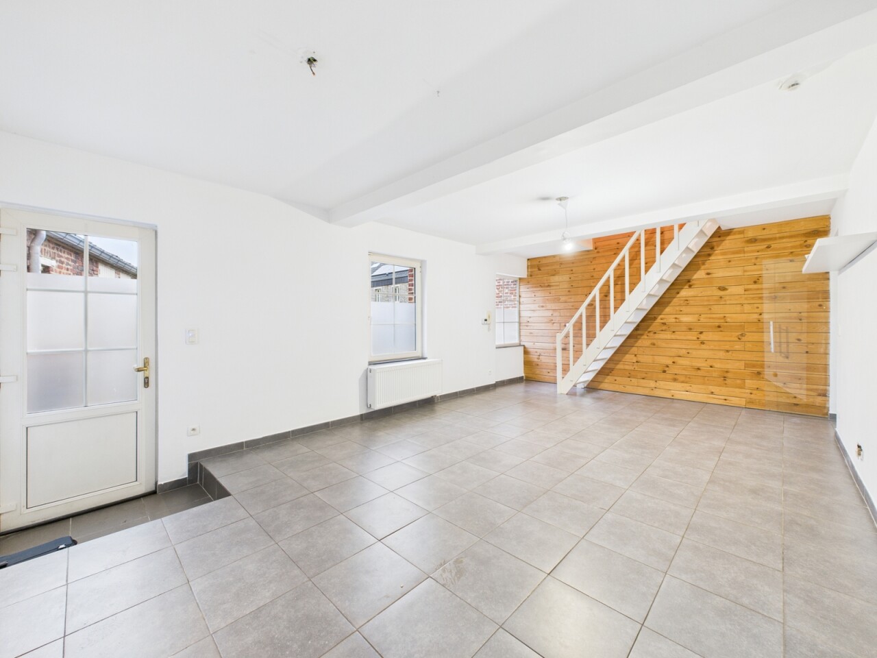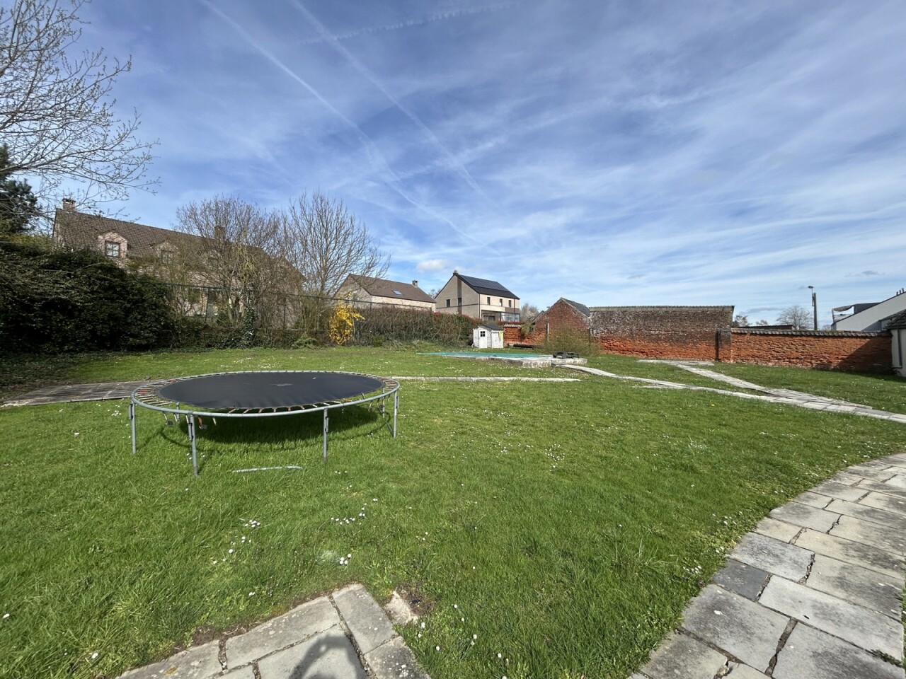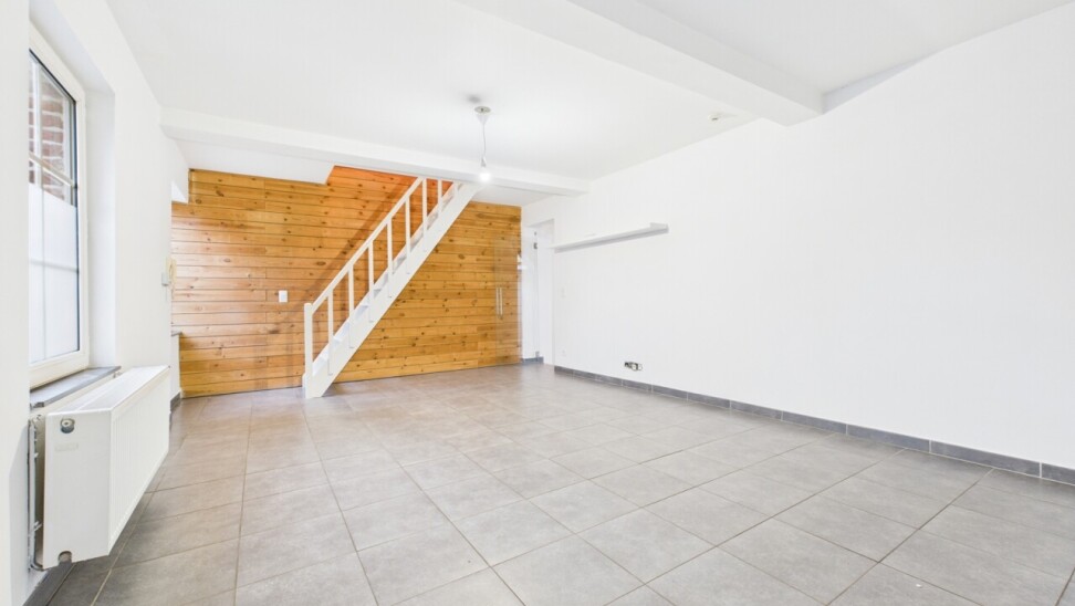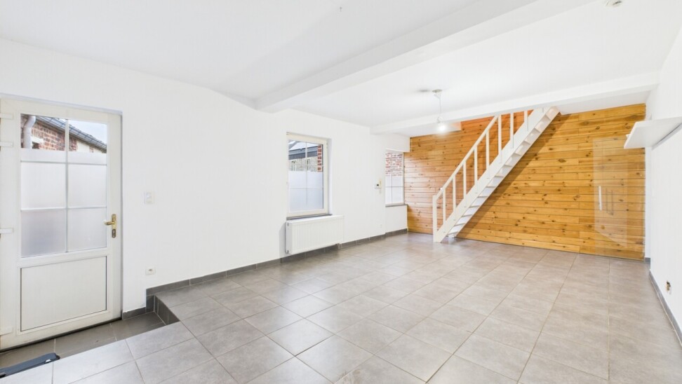 La maison se compose au rez-de-chaussée d'un séjour de +/- 30m², d'une cuisine équipée attenante, d'un WC et d'une chambre de 20m² avec salle de douche à aménager.