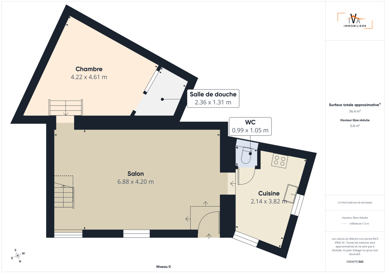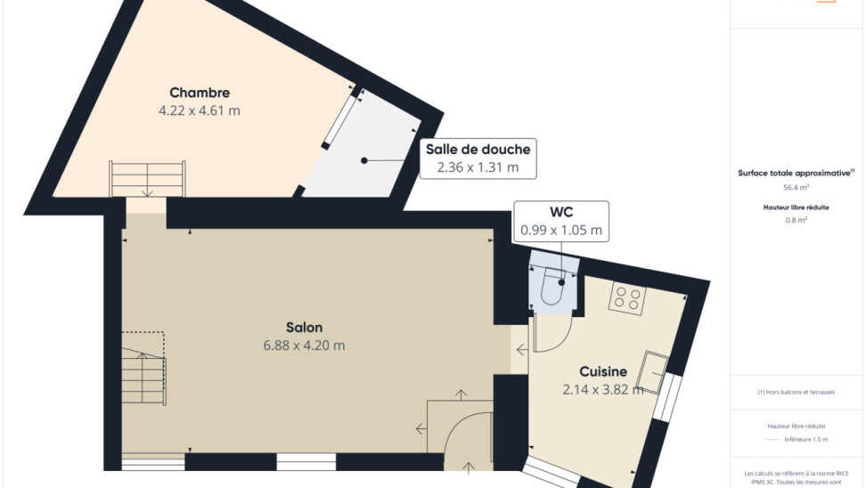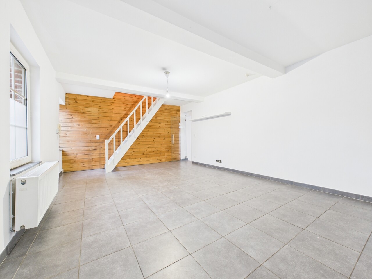 La maison se compose au rez-de-chaussée d'un séjour de +/- 30m², d'une cuisine équipée attenante, d'un WC et d'une chambre de 20m² avec salle de douche à aménager.
