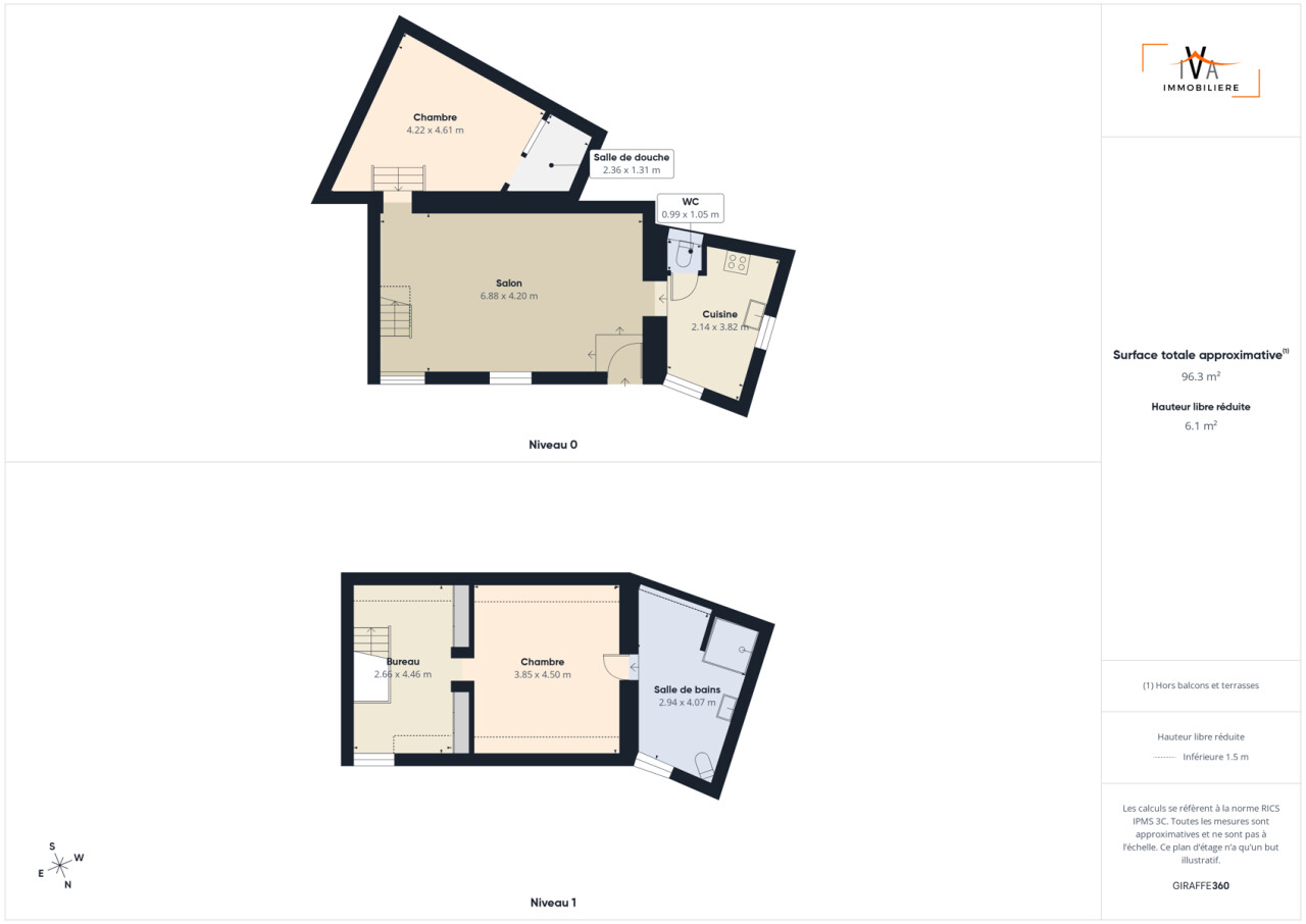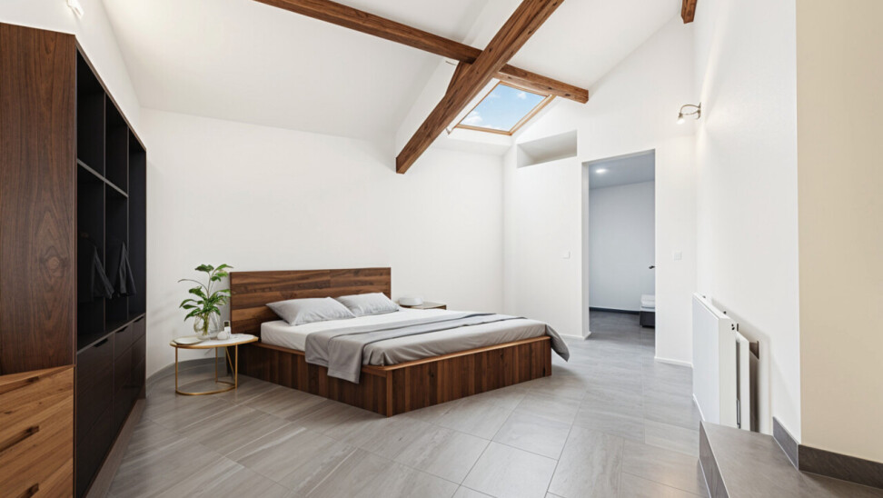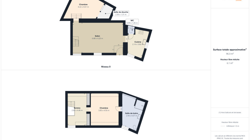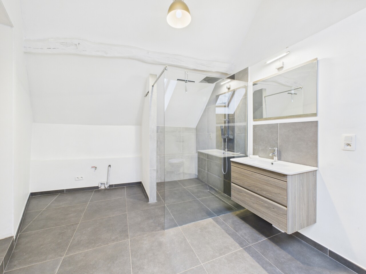 A l'étage se trouve une grande pièce bureau/dressing, une grande chambre de 17m² et une salle de douches (avec grande douche à l'italienne, WC) de 12m² comprenant également un espace buanderie.