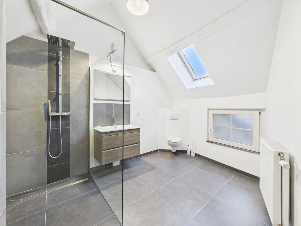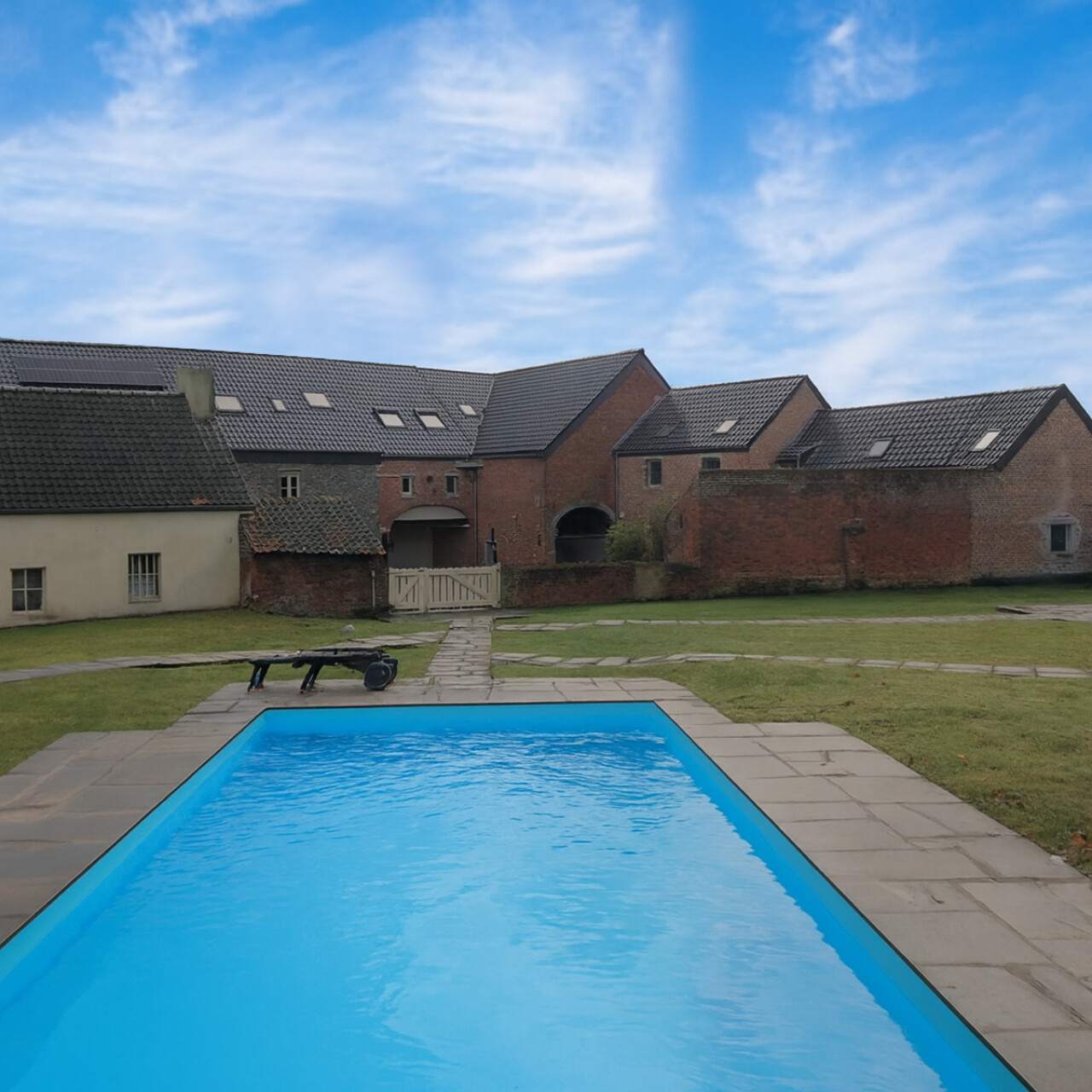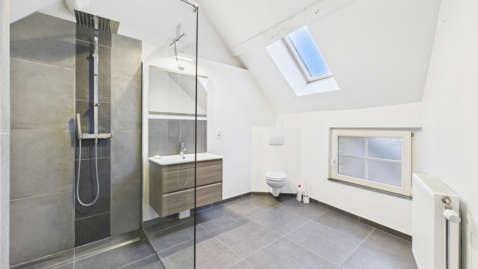 Chauffage individuel au GAZ. Electricité conforme, PEB "D". Charges communes +/- 90€/mois (entretien piscine et jardin, assurance et syndic).