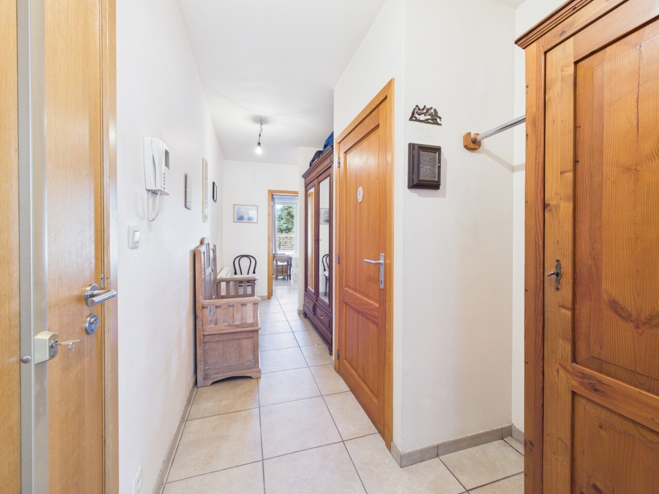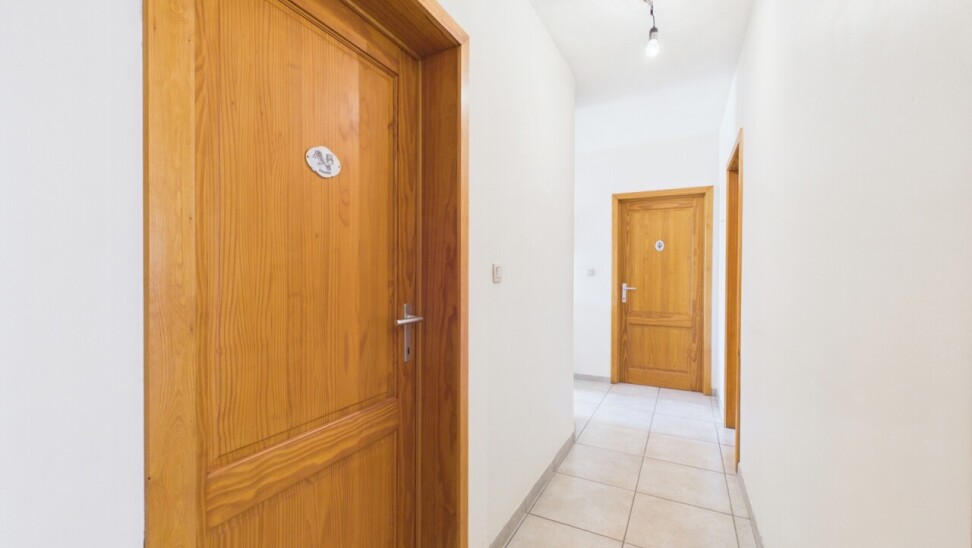 Il se compose d'un hall d'entrée avec wc, d'un séjour très lumineux avec une cuisine ouverte équipée, d'une buanderie, d'un débarra, d'un hall de nuit qui dessert deux chambres avec placards intègres (+/- 13m² et 16m²), une salle de bains et l'accès à une très belle terrasse offrant une magnifique vue sur les champs.