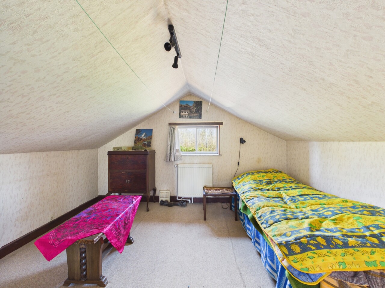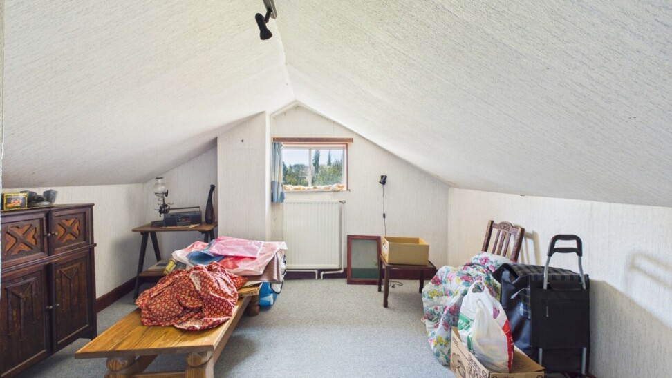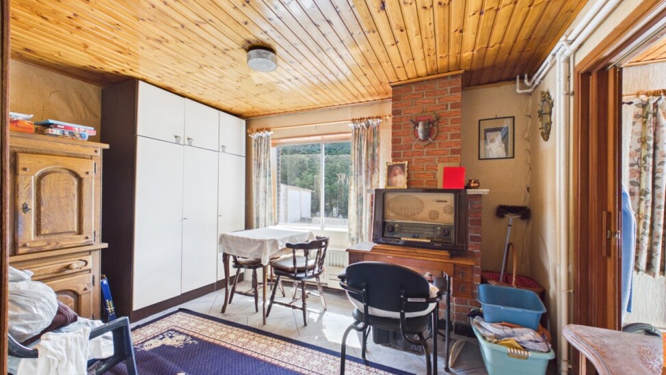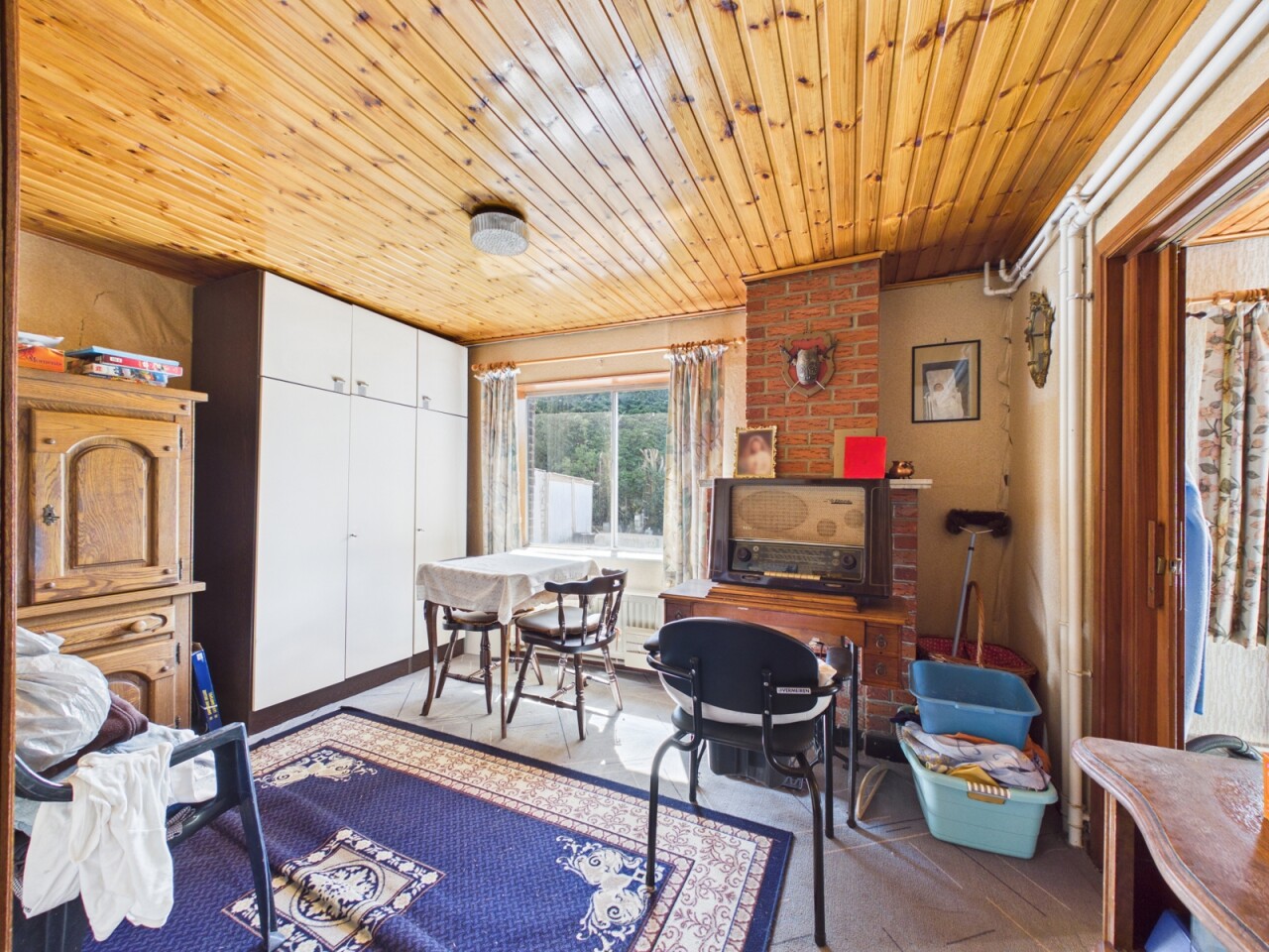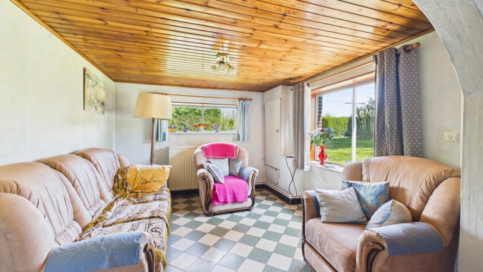 La maison se compose actuellement d’un hall d’entrée, d’un séjour, d’une cuisine, d’un bureau avec une chambre en enfilade ainsi que d’une salle de bains avec WC. À l’étage, vous trouverez deux chambres supplémentaires.