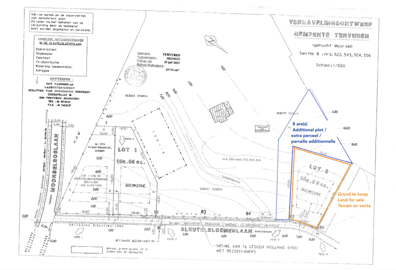 IVA vous propose un terrain de 10ares55 (largeur à rue +/- 17 m et +/- 42m de profondeur) idéalement orienté SUD-OUEST. Implanté dans un quartier résidentiel de standing et prisé dénommé "Moorsel", ce terrain offre un environnement de vie exceptionnel et bénéficie d'un accès à une voirie équipée en eau, électricité et égouts. Zone de bâtisse au sol de ± 250m² pour villa 4 façades moderne et contemporaine. Libre de constructeur, parcelle comprise dans un lotissement, prescriptions urbanistiques disponibles. Projet d'architecte disponible sur demande *** PRIX DEMANDE 450.000 € SAUF OFFRE SUPERIEURE *** sous réserve d'acceptation des vendeurs. Possibilité d’acquérir une parcelle de terrain supplémentaire d’environ 8 ares, en concertation avec le propriétaire voisin. Pour plus d'informations, contactez nous au 02 850 03 63.